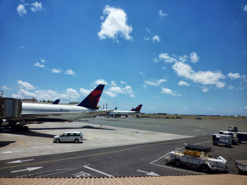 DELTAの国内線のカウンターでチェックインして手荷物検査場へ。手荷物検査の入り口でTSAの人から「あなたのチケットはTSA Pre Checkなのであちらのレーンに行って」と言われ、妻と二人でそのレーンに言ったら、「Pre Checkはオッさんだけだから妻は戻って」ということになり、オッさんはPre Checkレーン、妻は一般レーンということになりました。