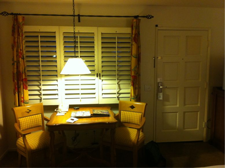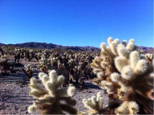 2013/01/01 Category : オッさんの旅日記(海外編) 2012-2013 New Year Vacation Day3 今日はトレッキング。午前中にFortynine Palms Oasisというトレイルに挑戦です。全長5kmくらいのトレイルですから、運動不足のオッさんと妻にはちょうど良い距離かもしれません。岩山のトレイルを登ったり降りたり…。延々と歩きます。ここはJoshua Tree National Park内なのですが、PARKのエントランスを通らずにアクセスするところなので、入口が非常にわかりにくいのです。オッさんも妻も州道62号線を行ったり来たりして入口となるCanyon Roadを探しました。もし行かれる方がいらっしゃったら、「動物病院の脇の道」と覚えておいてください。このトレイルは普通のガイドブックに載っていません。妻のリサーチによって発見された知る人ぞ知るトレイル。とは言え、たくさんの方がいらしゃったので人気が無いというわけではないんですよ。延々と歩くと岩山の中にポツンとPALM TREEが群生しているじゃありませんか!逆光なので感動が伝わりにくいですねぇ。実際には茶色の岩山の世界にポツンと緑が見えて感動するのです。まさにオアシスです。近くに行って見るとこんな感じです。しかしながら、砂漠の岩山で水を求めてここに来る人がいたらガッカリです。なぜならPALM TREEは群生してても水は湧いてないのです。きっと地下水かなんかなんでしょう。トレッキングを終えて移動です。今日はJoshua Tree National Park内を北から南に横断です。公園と言っても恐ろしく大きく、なんと、東京都の1.5倍の広さがあるのです。ですから今日の走行距離は130kmにもなります。Joshua Tree NPのゲートで15ドル。国立公園は必ずフィーを取られますが、これだけの公園を維持管理するんですから快く払えますね。しばらく走るとJosua Treeが群生しているエリアとなります。Joshua Treeというのは通称で、本名はYucca Brevifoliaと言います。なんでもこの地を訪れたモルモン教徒の方が聖書のヨシュアが天を仰ぐ姿にちなんで名付けたんだとか…。一本だけ見るとなんか貧相な木なのですが、これが見渡す限りに群生していると圧巻です。短いトレイルがあるというJumbo RocksやSheep Pass、Hidden Valleyという岩山エリアに行ってみたのですが駐車場が一杯で停められません。どうやら新年のカウントダウンをこの地で過ごそうという若いキャンパー達が集っているようです。あちらこちらでロッククライミングをしている方がいらっしゃいます。高所恐怖症のオッさんには到底、理解ができないスポーツです。トレッキングを諦めて南下を続けます。この公園は広大なだけにちょっと走ると風景が変わるのが特徴ですね。Joshua Treeエリア、崩れそうな岩山のエリア、砂漠地帯などなど。途中でCholla Cactus Cardenというエリアで休憩がてら軽く歩きました。このサボテン、なんか海の中の生物みたいで気味が悪いのです。しかもそれが群生して見渡す限りに生えてます。Cholla Cactasというのはサボテン科のオプティア属というのに属するらしく、この属で有名なのでウチワサボテンです。しかしこのサンゴのようなチョーラ・サボテンはウチワサボテンと似ても似つけませんけどね。なんか分身みたいのが地面にコロコロと落ちています。ここからまた生えて来るのでしょうか…。別名"Jumping Cholla"と言われ、不注意な人にくっつくらしいです。もはやオッさんには地球外生物にしか見えません。さて、このガーデンは公園のほぼ中心部分。更に南下します。草木もなくなってきて荒涼とした砂漠地帯のドライブです。ようやく公園の敷地から出ると、お馴染みのI-10に出ます。なんかちょっとだけホッとしますね。I-10を西に走り、今日の目的地に向かいます。今日の目的地は砂漠のオアシスLa Quinta。ここは3年前のGWに訪れた思い出の地。妻のお気に入りで今回の旅程に当然のごとく入ってました。La QuintaはよくPalm Springsの一部として紹介されますが、どちらもカルフォルニア州リバーサイド郡の別々の街です。LA側から東に向かうとPalm Springs、Palm Desert、La Quinta、Indioという順番で街が現れます。まぁこの一帯を総称してパームスプリングスと言うんでしょうけどね。到着したのが夕方遅くだったので日が暮れてきました。今回の部屋はこんな感じです。前回宿泊の部屋よりは小さなコテージですが十分です。部屋の中はこんな感じです。La Quintaと言い、Arizona Innと言い、妻はこのてのホテルに来るとテンション上がりまくりです。オッさんも良いと思うし気に入っているのですが、妻ほどテンションが上がるわけではないので、「なんでテンションあがんないの!」と責められても困惑するだけです。だって妻は瞳孔開いてるし、声も1オクターブ高いのです。そこまではハイになれませんよ…。くどいですが、オッさんは興味が無いのではなく、普通に「いいとこだなぁ」と思ってますよ。今日は大晦日。日本人としてはカウントダウン・パーティーよりもひっそりと部屋で飲む方が向いてます。ってことで、ちょいと街に