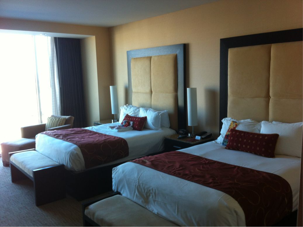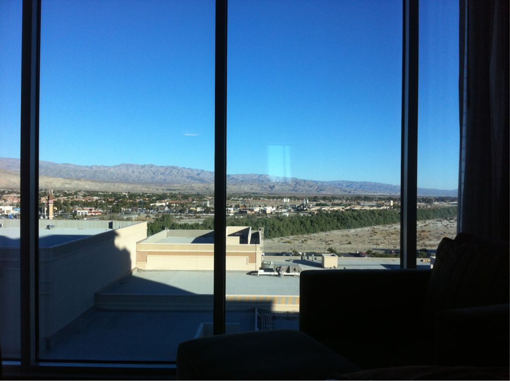 2013/01/03 Category : オッさんの旅日記(海外編) 2012-2013 New Year Vacation Day5 今日は1月2日。日本で言えば正月2日目ですからゆっくりと過ごします。とは言え長距離移動をしないだけですけどね。2泊したLa Quintaも今日で終わり。朝の散歩で堪能します。こちらではクリスマス休暇が1月1日までということもあり、どうやら1月2日はクリスマスの飾り付けを撤去する日のようです。昨日まで綺麗に飾ってあったメインのクリスマスツリーも、高所作業車が出てきて撤去作業。なんかさみしいですね。ついでにロビーの横に立っている衛兵さんも写真に収めてみます。これは何のイメージなんでしょう?スペインの衛兵って事なんでしょうかね。スペイン風の建物やら小物やらは素敵だなぁと思いますが、彼らはちょっと…。でもオッさんも成金になってデカイ家を建てたら彼らみたいな置物を置いちゃうんですかね。メインロビーの建物は改修を重ねているのですが、どうやら建設当初のレンガも残っているようです。今日は雲ひとつない快晴。気温もグイグイ上がってますので、半袖で十分です。昨日の写真と違ってLa Quintaの建物も青空に映えます。一緒に旅をしているGUMBYさんもお名残惜しいようです。さて、今日は宿を変えるためにちょとだけ移動。移動しがてら妻のショッピングタイムとなりました。まず訪れたのはPalm DesertにあるThe Gardens on El Paseoという高級ショッピングモール。名だたるブランドショップが並びます。しかしながら妻はブランドショップに立ち寄りはしませんので、Anthropologieを物色する程度。かわいらしいシャツをご購入です。一方、オッさんはこの手の洋服屋さんには全く興味を示さないので、嗅覚に頼ってToy Shopを探し当てます。ありました。"Go! Calendars & Games"というお店ですが、よくみるとクリスマスの売れ残りのToyも置いています。しかも全品半額。ウヒヒ。Family Guy物を数点入手しました。Family Guy物ってなかなか無いんですよねぇ。子供向けのショップには教育上置いてないのかもしれません。帰国後にご紹介することとしましょう。変な高級モダンお茶屋さんを発見。この看板がなんとも笑います。アメリカ人は好きですよね、こうゆうイメージの日本文化を。店からは甘ったるい匂いがしてましたので、きっとアリゾナ・グリーンティーみたいな日本茶とは思えない代物を売っているのでしょう。さて、次に訪れたのはPalm Desert Mall。米国のどの地に行ってもあるようなショッピング・モールですね。もちろん、妻のリサーチでお目当てのホリスターがある事を押えてでの訪問です。ハワイとかでアバグロ、ホリスターとか行くと高いし日本人ばっかりですけど、このようなモールに来ればただのカジュアル・ショップ。しかもセール品の品揃えが充実してますから安いもんです。セールになってればユニクロと変わらない価格帯だと思いますよ。このモールに来てもオッさんは嗅覚を働かせます。ありましたよ。"Toy Zam!"というトイザらスの偽物のようなネーミングの店が。どうやらTOYのアウトレットショップらしく売れ残った方々が雑然と置かれています。特に目に着いた物はなかったのですが、ノーマルなMr.Potato Headさんが転がってたので救済してきました。小腹が空いたので待ちに待ったモールのフード・コートに寄ります。今日の気分は軽くイタリアン。ってことはSBARROに決まりです。チープな味のスパゲティ with ミートボールとピザ。そしてダイエットコーク。オッさんと妻の大好物です。腹ごなしとショッピングを終えて今日の滞在先のAGUA CALIENTEというところに向かいます。そう、ここはインディアン・カジノ。カジノ好きな妻のチョイスです。Palm Springs周辺に遊びに来てカジノホテルに泊まる輩はオッさんと妻しかいないでしょうね。しかしながらカジノホテル。設備は立派で部屋も大きくて綺麗。その割にはお安く泊まれます。部屋はこんな感じ。部屋からは殺伐とした砂漠の荒野が見渡せます。一休みしてカジノへ。このブログで何回も言い訳しておりますが、妻はカジノ好きながら、5セントスロット専門。最近は5セントスロットが見当たらないので1セントとか2セントとかの台で延々と遊ぶのが好きなのです。1日中遊んだって20ドルもかかりません。しかも日本でパチンコはしません。ちゃんと書いておかないと「私がパチンコ好きと思われるちゃうじゃないの!」と怒られてしまうので、正確に記載させていただきます。ちょっと遊んでお腹が空いたので、今回の旅行で一番豪勢な食事を取ることにしました。このホテルにあるステーキハウス。美味しかったですよぉ。ビックリしたのはワインリスト。なんとiPadなんです。タップするとそのワインの詳細が出てきます。ただ英語ですから細かく説明されてもチンプンカンプンですけどね。旅行して食事をする時にワインを頼む事がありますが、2人で1本空けるほど強くはないオッさん達にとってはグラスワインが充実しているのは助かります。