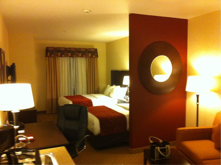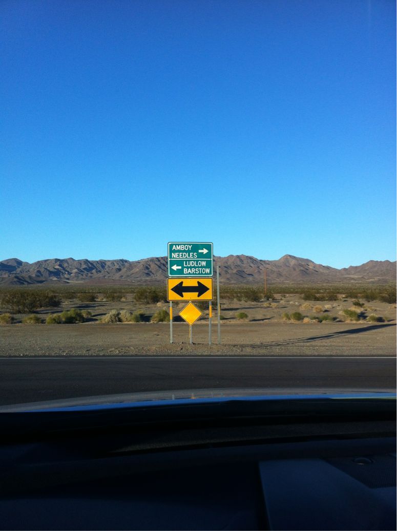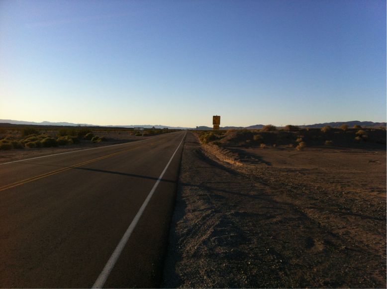 2013/01/03 Category : オッさんの旅日記(海外編) 2012-2013 New Year Vacation Day6 今日でPalm Springsエリアとはさよならです。La QuintaとPalm desertにしか滞在してませんのでPalm Springsに行ったとは言えないかもしれませんが…。今日は大移動の日です。午前中はI-10から州道62号という来る時に通った道を再び走りJoshua Tree National Parkに戻ります。先日は雨でどんよりしていた道も、晴れていると良い感じです。Park内に入り、先日は行けなかったポイントを押さえていきます。まず、Hidden Valleyというポイントで約1.6Kmのトレッキング。ここは崩れそうな岩山のあるエリアで、何とも不思議な光景が広がります。この崩れそうな岩山、誰かが大きな岩を積んだような山はなんなんでしょう?ビジターセンターで頂いた資料を読んでも「マグマ溜りがなんたらかんたらで…」とオッさんには難解です。まぁ、地中にあったヒビのある大きな岩が露出してこうなったちゅうことでしょう。次は車で行けるKeys Viewというポイント。車から降りて20mくらい歩くだけですが、強風でしかも無茶苦茶に寒い!白人の方々も寒がってるんですから相当なもんです。写真を軽く撮って退散です。Joshua Tree NPを満喫し、ロングドライブの始まりです。いつもはお世話になっているナビのNever Lostさんに目的地をインプットすると、当然のごとく最短コースを示します。今日の目的はできるだけフリーウェイを使わずに古い道でドライブすることでしたので、申し訳なかったのですが、ナビ機能をOFFにして黙っていてもらいました。まず、29 PalmsからAmboy Roadという道で東に向かいます。途中には小屋のような物がポツポツとあるのですが、近づくとほとんどが廃屋。いったい、なぜ、砂漠の真ん中に小屋を立てたのかもわかりません。ただ、この辺りはまだ人の気配がします。しばらくするとAmboy Roadはひたすら北上する道となり、上の写真にチラっと写っている山脈を超えます。ここら辺になると人の気配は全くなくなりますが、対向車は時々、すれ違います。写真では伝わりにくいですねぇ。上の写真の奥にある山の麓まで延々に砂漠を突っ走るわけです。砂漠地帯はこんな感じ。何も生き物はいない感じです。Amboy Roadの突き当たりの"Amboy"というところまで来ました。街があると思ったら大間違い。何にもありません。あえて何かあるかと言えば"Amboy Crater"というのがあります。太古の昔に隕石でも落ちたんでしょう。そんなすごいところなのに観光地化もされてないから、砂漠にポツンと噴火口みたいな小山があるだけです。ここから西に向かいます。地図上ではNational Trails Hwyとなっていますが、ここはOLD ROUTE66。HISTORIC ROUTE66とも呼ばれます。オッさんと妻はかなり以前からアリゾナ州のHistoric Route66を走ってましたが、カリフォルニア州のRoute66は初めてです。R66は1984年にInterstate40号線が開通したことにより廃線となりました。しかし1990年頃からアリゾナ州やミズーリ州で保存道路として復活しHistoric R66と呼ばれています。この道はHistoricの文字が無いのですが、地図にはOld Route 66とあります。夕暮れ時に真っ直ぐなR66をひた走るなんて、オッさんと妻には至福のひと時です。一時間ほど走ってますが対向車は一台も来ません。冬なので16時を過ぎるとどんどんと陽も落ちてきます。至福のひと時も良いのですが、このまま暗闇になってしまうと話は別。何かあったら誰も助けてくれないでしょうからコヨーテの餌食かも…。ずっと走っていたかったのですが、I-40と交差するLudlowというところで断念。I-40に乗っかって西へ向かい本日の宿泊地であるBarstowに到着。ホテルに着いた時は陽が完全に落ちていました。Barstowはモハーヴェ砂漠の西側にある人口2万2千人の街。1840年代にモルモン教徒によって開かれた街のようです。砂漠を超えて西海岸へ到達する前の休憩地って感じでしょうか。今日の宿泊はComfort suites - Barstowです。I-40からI-15に入ってすぐのインターチェンジを降りてすぐ。I-40とI-15が交わるからでしょうか?ホテルの周辺はトレーラーがウジョウジョいて、トラック・ステーションの様相です。ホテルの部屋はこんな感じです。部屋は綺麗で良いのですが、エアコンが効かず寒くてたまりません。ロビーにクレームすると「エネルギー節約システムを導入しているので、センサーに人が反応しないと暖まらない」とのこと。我慢してしばらく居てもダメなので、部屋を変えてもらいました。こっちもしばらくは節約システムとやらで暖かくならないのですが、温風は出てきます。エネルギーの節約は大切ですが、冬の時期に部屋に入って「寒い」と思わせるのはいかがなものでしょう?よって評価は減点させていただきます。このホテルから2分のところには、みんなが大好きアウトレットモールがあります。クリスマスセールが終わった直後というのもあり、なんかスカスカ感があるのですが、ラルフローレンとバナナリパブリックで少しだけ買い物。夕食は待ちに待ったパンダ・