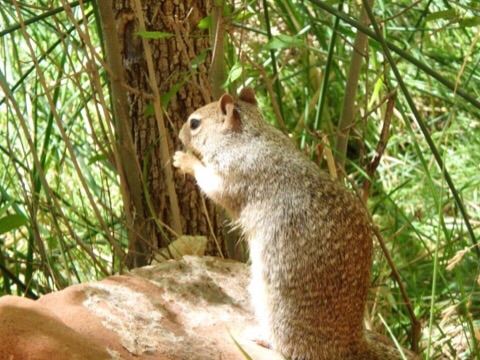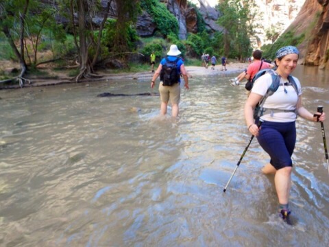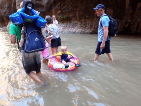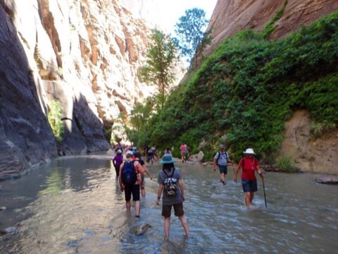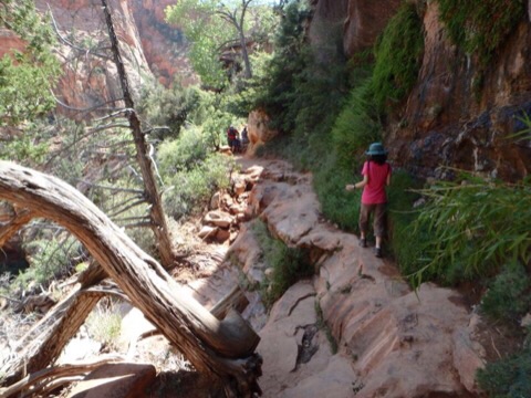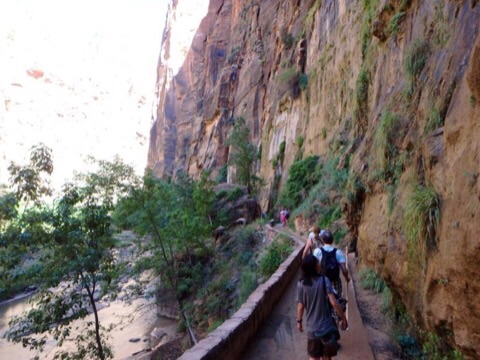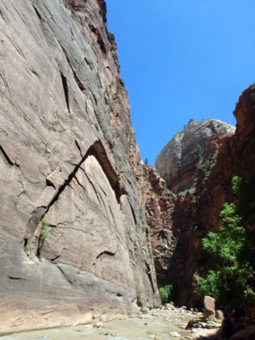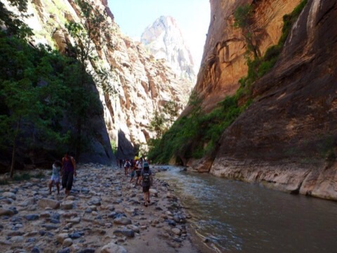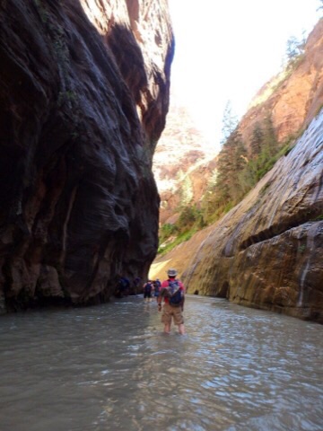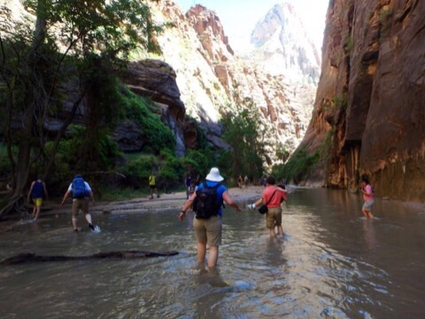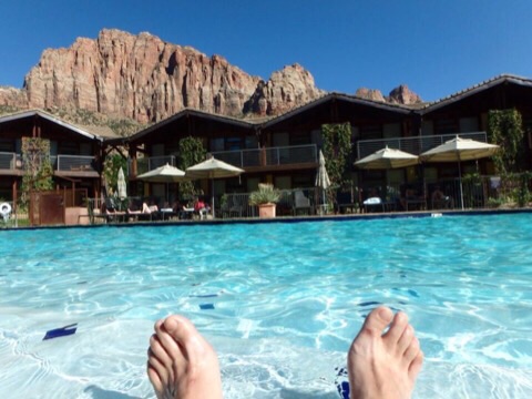2014/08/09 Category : オッさんの旅日記(海外編) 2014 Summer Vacation in Utah " Day6" Drive & Hike の旅も6日目。今日の朝はZion Lodge。すがすがしいですねぇ。朝起きていきなりZionの岩がドーンとあると、「いやぁ~旅してるなぁ~」って思っちゃいます。今日はシャトルに乗ってハイクするポイントまで連れて行ってもらいます。パーク内にはこの無料シャトルが5分おきくらいに走っていて非常に便利。いちいち車で移動したり駐車場を探さなくて良いですからね。連れて行ってもらったのはTemple of Sinawavaというポイント。National Parkの中心からやや西よりのポイントですが、シャトルで行けるのはここまで。つまり普通に行くと最深部ってことです。ここからRiverside Walkというトレイルを進みます。呼んで字のごとく、川沿いを歩くトレイル。川を上流に向かってあるくのですが、かなりフラットですし、道も整備されていますので、なんてことはありません。Zionは2回目というオッさんと妻の目的は、このEasyなトレイルを歩く事ではありません。今回の企画は「渓流ハイク」。そうです、このThe Narrowsという川というか渓流をどんどん上流に登っていこうという企画なのです。Riverside Walkの終点からはアドベンチャー。まずは簡単な川登り。この辺りだと興味本位で登る軽装のファミリーなんかもウジャウジャしていて賑わってます。しばらくは浅瀬。登る人、下る人でけっこう混雑しています。川岸がある部分は川岸を歩きます。川の中より歩きやすいですけど、石がゴロゴロしていて滑りやすく、決して楽なハイクではありません。しばらく行くと川岸の無い幅の狭いエリアに突入です。水深は膝上くらい、深いところだと太ももくらいまで。流れが穏やかなので何とか前には進めます。上の景色も見たいし、足元も気になるし、大忙しです。上流から帰ってきたファミリーと出会いました。小さな子供もこれだったら楽勝ですね。大ウケしちゃいました。更に上流に行くと両岸の崖が迫ってくるように立ちはだかります。川岸も左岸、右岸と交互にありますので、その都度、川を横切るために川の中を歩くという繰り返し。遠くに高い岩山が見えてくるとダイナミックな光景になります。いやぁ圧巻。川幅が多少広くなると歩きやすいのですが、延々どこまで歩いてよいのかわからなくなってしまいます。1時間30分ほど歩いたところで折り返すことにしました。あまり奥まで行って帰れないなんてシャレになりませんからね。あとは来た道を戻ります。帰りも1時間30分はかかりますから、往復3時間くらいは歩いてたことになりますね。まぁゆっくりですから距離はたいしたこと無いと思いますけど。オッさんと妻はこの川に入るために、ちゃんとウォーキング用のサンダルを持参してきました。なぜなら前回の訪問時、妻がスニーカーで川に入ったら靴底の接着剤が取れてカパカパになっちゃった事件というのがありましたから。オッさんのサンダルとリスさんの2ショットを撮っておきました。せっかくですからリスさんのお食事風景も。リスの写真を撮ってるのは明らかに海外からのツーリスト。米国人は見向きもしません。アジア人も撮りますが欧州人もけっこう喜んで撮ってます。帰りもシャトルに乗りましたが、ロッジに向かう途中のBig Bendというポイントで下車。ここの風景がオッさん的には"THE ZION"じゃないかと思います。シャトルと一緒に撮っても絵になりますねぇ。再びシャトルに乗ってロッジまで帰ります。遅い昼食になりましたがホットドッグとダイエットコーラ。運動の後はどんなジャンク・フードでも美味しく感じるもんです。1泊お世話になったロッジにも「さようなら」のご挨拶。妻はZIONを愛していますから、またお世話になることもあるでしょう。今日の宿泊はNational Parkからちょっと外に出たSpringdaleという街。この街で一番人気のホテル、Desert Pearl Innに宿泊です。これもツアコン妻のセレクション。いったい、どうやって情報を集めてるんでしょうか・・・?さすが人気のホテル。部屋は広々として内装もいい感じです。ミニキッチンも着いてます。冷蔵庫、レンジ、トースターもありますから長期滞在もOKですね。それぞれこだわりぬいた備品って感じでホテル側のやる気が感じられます。バスルームも広々。当然、妻はバスタブのあるホテルしか選びません。バルコニーも広々。しかもコンセントが外にありますので、オッさんは今、このチェアに座ってPCつないでブログ書いているところです。さて、妻がこのホテルを選んだのは、この素敵な部屋だけが理由ということではありません。妻が選んだ最高の演出はこれ。ダーン!大好きな赤い岩山を見ながらのプール!もう最高です。あんまり素敵すぎましたので18時くらいまでずっとプールにいました。更にジャグジーもドーン!もはや露天風呂状態です。19時頃になりましたので、付近のお店に食事に行こうと部屋を出たら、こんなカワイイ車を発見。JOHN DEEREのバギーです