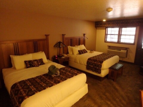 2014/08/08 Category : オッさんの旅日記(海外編) 2014 Summer Vacation in Utah "Day5 #2" さて、5日目の後半の出来事を書いていきましょう。昨日はUT-12からUS-89に入ったところまで書きました。このUS-89というのもScenic Byway。絶景道路です。途中の道でカッコ良いシボレー・トラックを見つけましたのでパチリ。いつかはレストアして乗ってみたいもんです。妻に言わせると「エンジンは燃費の良いカローラかなんかのエンジンに積み替えてね」だとか。まぁそれもアリっすかね?UT-89を南下し、Mt.Carmel Junctionというところで右折してUT-9を西に向かいます。そうです、ここから12マイルのところにあるZion National Parkが今日の目的地。UT-9を進んでいくとZion National Parkの看板が!2006年に訪問して以来、2度目の訪問となるZion。何を隠そう、妻は数あるNational Parkの中でも「Zionが一番好き」というZionファンですので、この辺りから妻が妙なテンションになってきました。ゲートで$25の7Daysパスを購入してパーク内へ。Bryce Canyonでもチケットを買いましたが、別々の公園ですから再び買わなくてはならないのです。前回訪れた時は西側のゲートからのアプローチでしたが、今回は東側ゲートからの入園。前回に通ってない道ですから新鮮ですね。ゲートからVisitor Centerまで12マイルのドライブ。この道はZion-Mount Carmel Highwayと言ってすごい絶景の道路なんです。言葉や写真では伝えにくいですが、ビッグ・サンダー・マウンテンが延々12マイル、つまり20Km弱続くと思っていただければ良いと思います。まずドーンと見えてくるのがCheckerboard Mesa。どちらかと言うと白っぽい岩ですね。最初の方は白っぽい岩の間を通り抜けるドライブです。しばらく行くと長いトンネルがあるのですが、妻の調べによると、その手前に良いトレイルがあるとの事。さっそく駐車して”Canyon Overlook Trailに挑戦することにしました。このトレイルは片道1マイル、つまり往復3.2Kmという短いトレイル。しかしながらアップダウンがありますので、汗、ぐっしょりになっちゃいます。手すりが付いているとはいえ、なかなかの崖っぷちトレイル。高所恐怖症なんて言ってられません。中にはこんなところも・・・・。でも小さな子供も歩いてますから"EASY"ってことなんでしょう。トレイルの右手にそびえ立つのはEast Templeという岩山。これも白っぽい感じですね。で、トレイルの終点のポイントに到着。ここからはZionの岩山を一望できるとのこと。写真では伝わりにくいですが、すごい高さの断崖絶壁なんです。写真では伝わらないと思いましたので、念のため動画も撮っておきました。これで伝わるかな?トレイルを楽しんだあとは車に戻ってVisitor Centerを目指します。だんだんと岩が茶色くなってきました。Visitor Centerに寄ったのはこのチケットを受け取るため。今日の宿泊はパーク内のZion Lodgeというところなのですが、そこに行くにはパーク内のシャトルしか通れない道を通過する必要があるのです。この赤いカードを持っていればロッジまでは行けるという仕組み。本来はロッジに予約を入れると、自宅にこのカードが送られてくるはずなのですが、妻が仙台の家で待てども待てども便りが来ず、Visiter Centerまで取りに行ったというわけです。シャトルしか入れないパーク内を北へ向かう道路に入ります。おぉ2006年の記憶が蘇えってきますねぇ。Zion Lodgeはこんな感じ。妻が最も大好きなロッジで、米国でも人気の高いロッジですから、夏のハイシーズンに予約を入れるのは至難の業。ツアコン妻、かなり力を入れて予約したに違いありません。なんでも最後の一部屋をギリギリで押さえたとか言っておりました。部屋の中も「ロッジ!」という感じで良いのです。テーブルセットやスタンドも落ち着いてますね。バスルームはシンプルですが、可愛い動物のタイルが付いています。部屋からバルコニーに出てみると、さっそくシカさんが挨拶してくれました。ただちょっとヤセていて大丈夫かな?という感じですが・・・。そんなこんなしているうちに18時。20時までは明るいですから時間の感覚が無くなりますが、腹時計はしっかりしています。お腹空きました。レストランは予約が必要で遅くまで待ってられないし、以前に来た時にそれほど美味しいとは思わなかったので、今日の夕食は簡単にすることにしました。簡単と言ってもボリュームありますけどね。ハイキング後に岩山を見ながらのビール、最高です。妻はなぜか「帝王ジャック・ニクラウス」のレモネード。ゴルフが嫌いな妻が帝王ジャック印のレモネードを飲むなんて・・・笑えます。多分、本人はこのオッさんが誰だかしらないでしょうけどね。20時近くになるとようやく陽が傾いてきます。岩山が赤くそまるこの時間帯、いいんですよね。陽が暮れるとロッジの前の芝生にシカさんたちが集まってきます。今日は親子連れのシカさんが搭乗、お母さんのおっぱいを飲んでいます。さて、明日もZionを堪能しまくることにしましょう