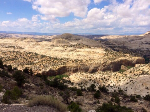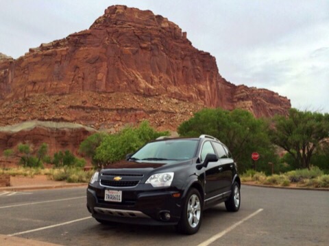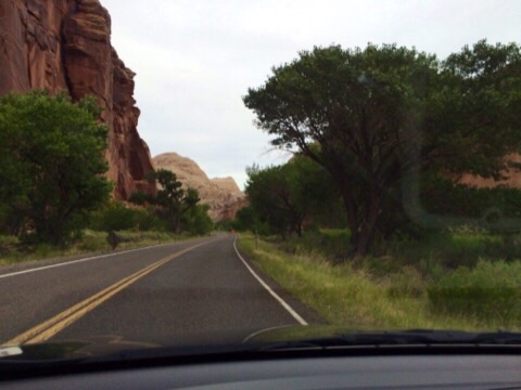 2014/08/05 Category : オッさんの旅日記(海外編) 2014 Summer Vacation in Utah "Day3" 北米旅行3日目。今日から妻プロデュースのユタ州ドライブ旅に出ます。オッさんは旅行前に忙しすぎて詳しい内容を聞いていませんから、ガチでミステリー・ツアー状態です。歳をとるにつれ、オッさんも妻も時差ボケが激しく、昨晩も眠ったか眠らないかわからない状態。一応、9時までゆっくりして10時過ぎにチェックアウトというゆっくりしたスタートを切ります。まずはTARGETに寄って旅の前の買い出し。Interstate15号線を南下します。以前来た時は工事中だったのですが、片側3車線の立派な道路になってますね。まぁハイウェイですからちょっとたいくつなドライブになります。I-50を120マイルくらい走ってScipioという街からはUS-50へ入り更に南下。USとは言うものの対向2車線のローカル・ロード。この辺からだいぶ雰囲気出てきますねぇ。天気予報では「雷雨」となってましたが、「曇り」って感じでしょうか。途中でちょっとだけ雨には降られましたが路面が濡れるほどではありませんでした。Salinaという街まで来たらUS-89を一度北上します。ちょこちょこ人が住んでる気配はありますが、何にもない牧草地域って感じでしょうか。ここらへんまで来たら目的地まで約半分。お腹も空いたしどこかで休憩しようと思ったのですが、なんせ何にもないところ。家や牧場はポツポツありますが、街と呼べるようなところは一切ありません。しばらくUS-89を走るとCenterfiledという街に入りました。何か食べる物がありそうなところは・・・とキョロキョロしても、廃屋になってるドライブインくらいしか見当たらず、やっと見つけたガソリン・スタンドのミニ・マートで休憩することにしました。妻が車を降りる前に「ホットドッグとかあったらいいのにねぇ」と言っていましたので店内を探してみると、あります、あります、ホットドッグ。米国のコンビニでよく見かけるこのホットドッグのソーセージがグルグル回っているマシーン。せっかくの機会ですからこのマシーンを初体験してみようということになりました。マシーンをよく見ると、下の部分に「バンズはこちら」と張り紙があります。このフタをパカっと開けるとバンズが入っているという仕掛け。そのバンズにマシーン上でグルグルまわっているソーセージを乗っけるということですな。最後にケチャップとマスタードをかければ一丁あがり!このままレジに持っていけば良いのです。ちなみにお値段は1個1.09ドル。110円ちょっとちゅうことです。なかなかシンプルで美味しいですね、これ、簡単だし、次回以降も利用しちゃうかもしれません。もちろん、ラージサイズのダイエット・コーラも忘れずに。再びUS-89を走るとちょこちょこ小さな街を通り過ぎるようになりました。地下水なのか川なのかわかりませんが、この道路に沿って水があるようで、樹木や畑が多くなってきます。US-89を降りてユタ州道のUT-24を南東に向かいます。この辺りになってくると岩山が見えてきて峠道とまでは行きませんがアップダウンのあるドライブ。天気が良かったら最高だったでしょうが、そこは旅ですから、いつも晴れているとは限りません。しばらく走ると何やら池みたいな沼みたいのが見えてきます。周辺には牧草が青々としていて牛が大量に放牧されています。遠くから見ると蟻んこみたいに見えるんですよね。ここはKoosharem Reservoirという貯水池。ということは人工なんでしょうか?とりあえず腰痛予防の休憩をとる事にしました。気温はグッと下がって20℃くらい。長袖のパーカーを着てちょうど良いくらいです。青々とした牧草地帯が続くUT-24を更に南東に向かうと見慣れた茶色の岩山が突然見えてきます。いやぁ、岩山見るとユタに来た~って感じがしますね。そのまま走り続けると今日の宿泊地であるTorreyという街に到着です。なんとこの街、人口180人の小さな街。観光地ではありますが、ひとけもまばら。まぁこじんまりしていていいんですけどね。今日の宿泊地はこちら。この街の中にある宿泊地の中で妻が厳選したロッジです。この看板だけ見たら怪しげですよね。実物はこちら。人気のロッジだけあって女性ウケするキュートなロッジです。部屋の中はこんな感じ。ロッジと言ってもホテル並みに広いし綺麗ですね。なんか落ち着く部屋です。なんでも残り一部屋だったのを妻が押さえたのだとか。さすがツアコン妻。予報では雷雨でしたので、ホテルに付いたらヒマだなぁと思っていたのですが、雨は降らず曇りのまま踏ん張っていてくれていました。20時くらいまでは明るいので、チェックイン後に周辺探索のドライブに出ることにしました。UT-24を更に東に行くとあるのがCapitol Reef National Park。オッさんは旅行前に勉強していませんので、こんな近くにNational Parkがあるなんてビックリ。事前調査バッチリの妻は呆れ顔でしたけどね。パーク内をUT-24が通ってますので約20Kmくらいパーク内ドライブ