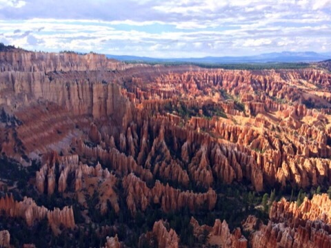 2014/08/06 Category : オッさんの旅日記(海外編) 2014 Summer Vacation in Utah "Day4" ユタの旅も4日目に入りました。今日は天気も回復したので気分が良いですね。今日のドライブは宿泊地のTorreyからUT-12を使って南下です。この道路はScenic Byway12と呼ばれAll-American Roadにも選ばれている絶景道路。妻がいつかはドライブしたいと狙っていた道です。道を走るとさっそくDEXIE National Forestという広大な国立森林公園のエリアに入ります。多少、雲は残っていますが、青空もあって楽しいドライブ。途中でウシさんにも出会えます。この辺りは森林公園内に牧場もあるらしく、ウシさんは気ままにウロウロとしているんでしょう。しばらく走るとVisitors Centerの文字が。さっそく道を外れて森の中に入っていくと、小さな可愛いVisitors Centerがありました。こじんまりしすぎていて少し入りにくいので駐車場で躊躇していたら、中のおじいさんが手招きしてくれるので車を降りました。よく見ると壁にはSmokey Bearさんがいるじゃないですか!ちょっとテンション上がってきます。このVisiters Centerはお爺さんとお婆さんが常駐しており、丁寧に森林公園の説明をしてくれます。すごくイイ人たち。訪れた人が世界地図にピンを立てるという行事があるのですが、なぜか日本にはピンが立っていません。妻が颯爽と「東京」にピンを立てさせてもらいました。宮城在住ですけど、何かと説明も面倒くさいので「東京」にしたようです。店内を見回すとSmokey Bearグッズが!どうやら子供向けのようですが、妻が「私はSmokey Bearが大好きなの!」と言うとお爺さんとお婆さんも大喜び。タダでグッズをたくさんくれました。帰国後に妻のコレクションをご紹介することとしましょう。お爺さんに誘われて小屋の外でHummingbirdを観察することに。ハチドリですね。この森にはたくさんのハチドリがいるらしく、餌付けしてあるところにはブンブンとたくさんのハチドリが飛んできます。iPhoneの連写機能で撮影してみたら上手く撮れましたのでアップしておきましょう。お爺さんとお婆さんにお別れし、UT-12の南下の旅を続けます。今度はDeer、シカさんの登場です。親のシカは近くに寄ると逃げてしまいますが、子鹿さんはこちらに興味があるのでしょうか、あまり逃げませんから撮影可能です。森を抜けると岩山エリアになってきます。茶色と言うか白っぽい岩。ここら辺はGrand Stalicase-Escalante National Monumentというエリア。かなりの標高まで岩山を登るドライブで、頂上付近になると眼下に絶景が見渡せます。この道路のハイライトがここ。写真では怖さが伝わりにくいのですが、正に「馬の背」。ガードレールが無い対向に車線で、道のヨコはすぐに崖ですから、ちょっとハンドル操作を誤れば崖の下に転落です。もちろん、時速20キロくらいで通過しますから、そんな事にはならないのですが、ちょっと緊張しますよね。「馬の背」を越えたら下山ルートになるのですが、延々と右サイドが崖という道が続き、緊張を解けません。次に現れるのが赤い岩山エリア。見慣れたRed Rockですが、道路ギリギリまで張り出しているのでダイナミックですね。この辺りでも標高は高く、シーニック・ポイントから下を見るとこんな感じです。約200Km、ゆっくり走って3時間のドライブの終点はBryce Canyon。そうです、Bryce Canyon National Parkのある街です。まずは宿泊地のBest Western Ruby's Innにチェックイン。ハイシーズンの観光地ですし人気のホテルですから、さすがにツアコン妻も予約を入れるのに苦労したんだそうです。部屋の中はシンプルですが清潔感があっていいですね。いわゆる「ロッジ」というタイプです。しばらく休憩の後、とりあえずBrayce Canyon National Parkに行ってみようということになりました。まずはゲートでお決まりの記念撮影。しばらく走ると再びSmokey Bearさんが!彼は公務執行中。しっかりと森の乾燥度合いをツーリストに知らしめ、山火事への注意喚起を行っております。ゲートで7Daysチケット$25を購入し、まずはここでもVisitor Centerへ。ちょこっとベタ土産を購入します。そしてSunset Pointというところに来て見ました。パーク内には駐車場のあるポイントが数ケ所あるのですが、すぐに満車になってしまうため、オッさんの宿泊しているRuby's Innから出ている無料シャトルを薦められるのですが、今日はハイシーズンと言っても平日。なんとか駐車することができました。ちょっと歩けばドーンとBryce Canyonのお出ましです。写真では何度も見ていましたが、やっぱり実物は迫力ありますよね。Sunset PointからInspiration Pontまでの片道1KmくらいのRim Trailを縦走してみます。少しずつ標高が高くなってきますので、岩山郡を上から見下ろす感じに風景が変化していきます。ただし足元はこんな感じ。一歩間違えば崖の下に落ちてしまいますから、Easyなコースとは言え油断禁物です。動画も撮ってみました。伝わりますかねぇ?一番高いところにあるBryce Pointまでは車で行ってみました。ここまで