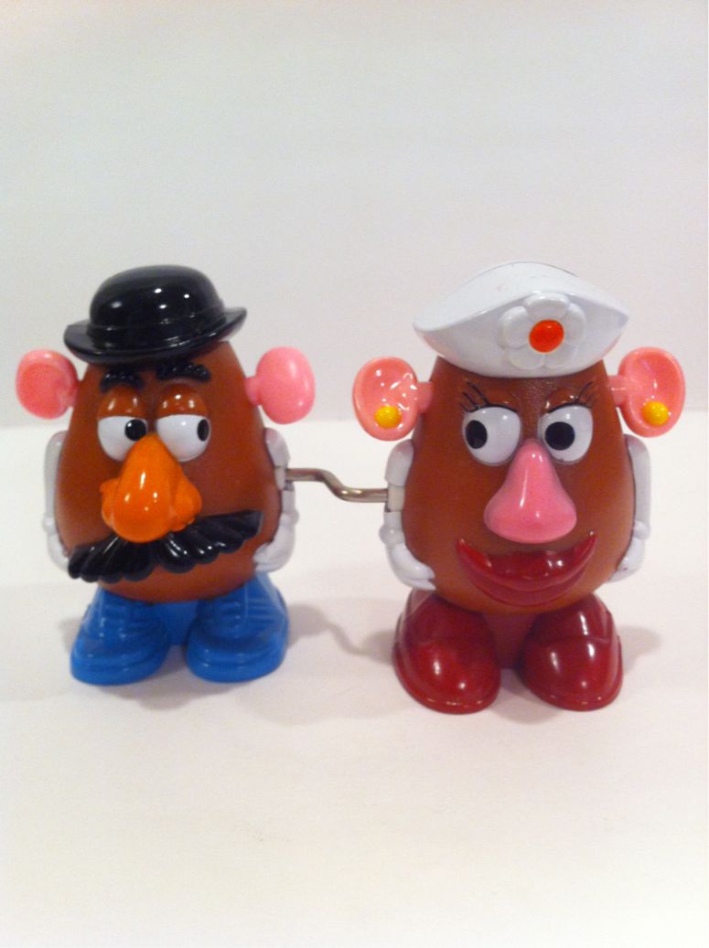 2013/02/15 Category : MR. POTATO HEAD Mr.Potato Head 2010s さてさて、正月のカルフォルニア旅行から連れて帰ってきた方々のご紹介も第4コーナーをまわった感じです。どんどん片付けないと妻に怒られてしまいます。今回は2010年製のMR.POTATO HEADさんです。当然、箱から出しちゃいます。 背中が空くようになっていて、顔のパーツが収納できるようになってます。 MR.POTATO HEADさんはTOY STORY公開以降、日本でも人気が出て、様々なプロダクトが出回ってますねぇ。歴史のあるキャラクターだし、人気もあるし、プロダクトのバリエーションも豊富となれば、コレクター魂に火がついてもおかしくないのですが、オッサさんは、それほど執着しておらず、ベーシックな物のみ手を出しているという感じですかね。 オッさんが手を出さないというか、手を出せない理由は、まず、「体の大きさが7~8インチと大きく、幅も取る」ということ。保管スペースに限りがあるオッさんのコレクションは、3~6インチのプロダクトが中心にならざる得ません。まぁGUMBYさんだけは別ですけどね。 そして「1体当たりの価格が高い」というのもネックです。3~6インチのプロダクトの場合、光ったり、喋ったりという事がなければ$10以内で新品は購入できます。しかしながらMR.POTATO HEADさんは$10以上はザラで、コラボ物なんかになると高くなって手が出ません。 このMR.POTATO HEADはパームデザートのTOY ZAM!というおもちゃ屋で投げ売りセールで$9.99になってたから購入したんです。しかしガラスケースの中には納まりそうもありませんねぇ。何か収納方法を考えなければなりません。「新たなガラスケース設置による収納スペース拡大作戦」は構想に1年をかけているので、イメージは出来上がっているのですが、なかなか実行にこぎつけてません。暖かくなったら実行しましょうかね。妻のクマ・コレクションも居所が定まってなくてリビングのソファーを占有してますし・・・・。 MR.POTATO HEADさんは1952年にHasbro社から発売されたのが最初のプロダクト。昨年、生誕60周年となりました。米国のコレクターの方のサイトで当時のプロダクトを拝見したのですが、50年代は正にジャガイモ野郎。細長いジャガイモに顔や手足のパーツをつけたという風貌です。当時はPOTATO HEADだけではなく、ニンジンやらキュウリやら、野菜シリーズとして売り出していたようです。1960年代は顔の部分が濃い茶色になりましたが、風貌は50年代のとあまり変わりません。70年代になると現在の風貌に近くなりますが、色は濃い茶色のまま。80年代になってようやく、現在のMR.POTATO HEADさんと変わらない感じになりました。 1950年代のCMをYOU TUBEで見つけましたので、載せておきましょう。ね、まさに「ジャガイモ野郎」でしょ? 前もって勉強しておかないと、アンティークショップで50~60年代のプロダクトに出会っても、MR.POTATO HEADさんだと気付かないかもしれませんよ。ちなみにオッさんは米国のアンティークショップで、これらの古いMR.POTATO HEADさんをお見かけした事がありません。e-bayで探してみると、50年代の箱付きのプロダクトは$100くらいします。ひえぇ~。サラリーマン・コレクターのオッさんには手がでませんね。 PLAYSKOOL©2010 Hasbro, Pawtucket, RI 02862 USA.All Rights Reserved.TM & ® denote U.S. Trademarks.HASBRO CANADA, LONG UEUIL, QC, CANADA J4G 1G2.MADE IN CHINA. ©2011-2015 GUMBYDREAM Created with flickr badge. http://