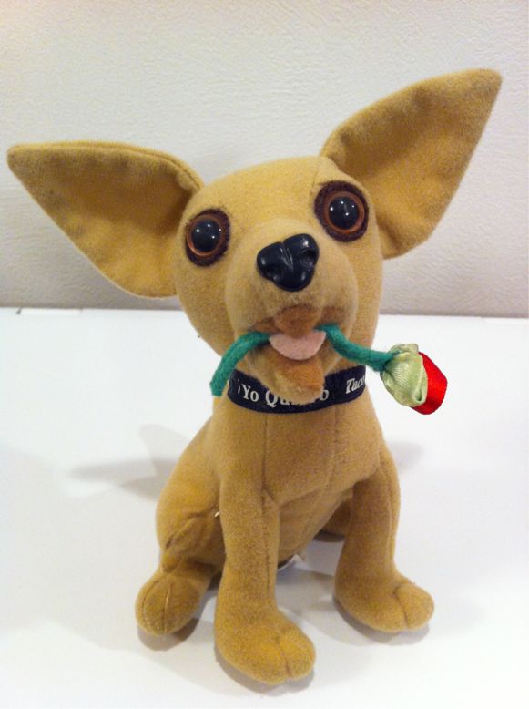 2012/04/23 Category : TACO BELL Taco Bell Talking Chihuahua with Rose タコベルのチワワさんです。1990年代後半のプロダクトと思われますが、詳細は不明。タコベルがDOG6というシリーズ物を展開した際のお一人のようです。ソルトレイクシティのアンティークショップからいらっしゃいました。お腹を押すと"I think I'm in love"と低い声で囁きます。だから薔薇を咥えているんですね。applause社製ですから作りもしっかりしております。タコベルチワワさんが我が家にいらっしゃるまでは長い年月が必要でした。オッさんはあちらこちらのアンティークショップで見かけ、我が家に持ち帰ろうとするのですが、妻との相性が悪いしらしく、なかなか許可がおりなかったからです。まぁ、最終的には強行突破ですけどね。Taco Bell Talking Chihuahuaは1997年から2000年までタコベルのコマーシャルに使われていたキャラクターです。CMではヌイグルミではなく実物のチワワが出演していて、カワイイ顔に似合わず低いセクシーなメキシカン・イングリッシュで喋ります。チワワはメキシコ原産の犬種ですから、タコベルのキャラクターとして採用されたんでしょうね。決まり文句はスペイン語で"Yo Quiero Taco Bell"です。英語訳は"I want some Taco Bell!"ですから「タコベル食いて〜!」みたいなニュアンスでしょうか?またまた勝手な和訳ですからネイティブの使い方が違ったらごめんなさい。日本ではタコベルもチワワも馴染みがないかもしれませんが、このチワワさん、現役時代は全米がチワワブームになるほど人気だったらしいですよ。ネット検索していたら、残念なニュースを見つけました。このタコベルのCMに出演されていたチワワさんが15歳の長寿を全うされて他界とのこと。2009年のニュースです。タコベルっていいですよね。米国に行くと、最低1回は寄ります。本番のメキシカンが堪能できるカルフォルニアでもアリゾナでも寄ります。本番のメキシカンはオッさんと妻にはちょっとヘビーなので、我が家ではタコベルがメキシカンなのです。「え〜⁈タコベルなんかファストフードでメキシカンじゃないよ!美味しいメキシカンを紹介してあげるよ!」と言われることが多いのですが、美味しいお店を聞くだけ聞いて、結局はタコベルに行くというわけです。ジャンクと言われようと良いのです。メキシカンが好きなわけではなく、タコベルが好きなのです!あぁ、タコベル食べたくなってきた…©APPLAUUSE INCWOODLAND HILLS,CAMADE IN CHINA ©2011-2015 GUMBYDREAM Created with flickr badge. http:// PR Comment0 Comment Comment Form お名前name タイトルtitle メールアドレスmail address URLurl コメントcomment パスワードpassword