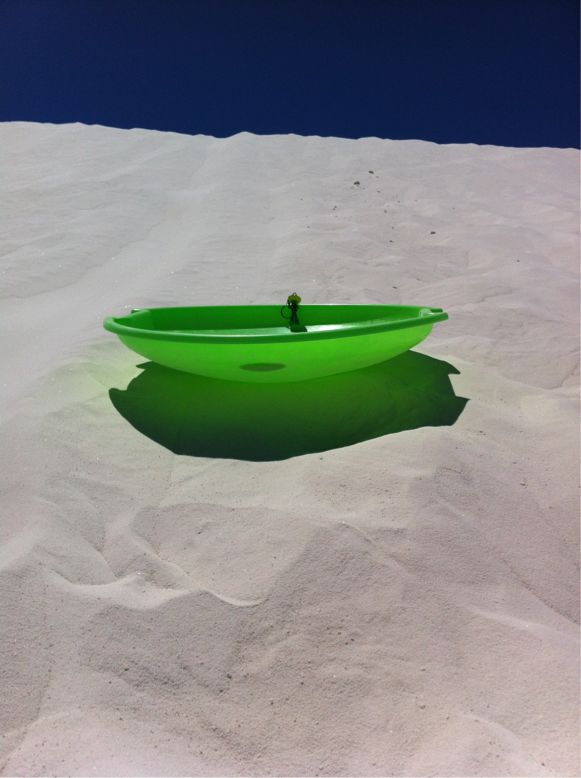 2012/04/28 Category : オッさんの旅日記(海外編) 2012GW Day3 White Sands National Monument, NM オッさんと妻の旅も三日目です。今日はゆっくりと起きて、ホテルで軽く朝食。最近の米国の地方のホテルは朝食付きっていうのが多くて助かります。まぁ、簡単なものですけどね。決して美味しいというわけではないんですが、必要なものは揃ってますし、オッさんが好んで食べるのはワッフル。どこのホテルでも必ず「自動ワッフル焼きマシーン」があります。できたてのワッフルにメイプルシロップかけりゃ、そりゃ〜満足なのです。今日はアラモゴードからUS70号線を南西へ25kmくらいドライブして、ホワイト・サンズ・ナショナル・モニュメントというところに行ってきました。ちなみにUS70号線は東海岸のノースカロライナからアリゾナまでを縦断する大動脈で、Route66がMain Street of Americaと呼ばれていたのに対し、Route70はBroadway of Americaって言われてたらしいですよ。ウンチクですが、US Hightwayは南北が奇数、東西が偶数です。Route70も偶数だから東西縦断っちゅうことです。さて、US70号線からホワイト・サンズに入ると、さっそくビジター・センターがあります。国立公園の基本形です。まずは、英語が読めなくても、小難しいお勉強が苦手でも、ビジター・センターには寄らなければなりません。National ParkなのですがNational Monument?ここは米国の国定記念物というか国定記念場所というか、そういったところなんです。National Monumentというのは、本来、文化遺産とか芸術遺産とかを指定するらしいのですが、米国は歴史が浅くて指定できるものがあまりなかったため、このようなそのまんまの自然を指定することもあるんですって。妻が以前から虎視眈々と狙っていたホワイト・サンズ。TVのCMとかでも使われることありますよね。ビジター・センターを過ぎると、約12kmのドライブ・コースがあります。まずはゲートで入場料を…あれ?今日はFreeだって。なんでもNational Park Weekだとかで無料開放。オッさんみたいにラッキーでない方は、一人3ドル払ってくださいね。最初はアスファルトの道路に灌木の生える砂漠。あれ?白い砂は?と思っていると徐々に砂丘がチラホラ見えてきます。しばらく行くと、白い一色となり、路面も真っ白。こんな感じで方向感覚やらなんやらがおかしくなってきます。雪道みたいに見えるかもしれませんが、全部、砂です。所々にピクニック・ポイントがあります。ただ、異常に日差しが強いので、すべてのベンチにはヒサシ付きです。さて、一番奥のHeart of the Sandsというポイントに車を停めて、砂丘に登ってみると、ド〜ン!真っ白な世界の登場です。連れて行ったガンビーさんも埋もれてみました。この砂は石膏なんです。雨が降らないから水溶性の石膏もこんな砂みたいになっちゃうんですね。この白い世界が710km2もあるんですって。鳥取砂丘の比じゃありません。こんなところにもトレイルがあるのですが、日差しは強いし、暑いし、カラカラの超乾燥だし、ホワイト・アウトで方向感覚なくなるし…ということで、オッさんと妻はトレッキングしないでおきました。その代わり、ビジターセンターで借りたソリで砂丘滑り。有料ですが、こんなのを貸してくれます。滑り降りるのは面白いんですが、砂丘の急斜面を登るのがツライ…結局、3回滑って力尽きました。あとはピクニック・ポイントのヒサシの下で昼寝。なんだかんだ1日ここに居ました。こんな自然一杯の公園ですが、ミサイル試験場と空軍基地が近くにあり、ミサイル試験があるときはRoute70が閉鎖されます。ちょうど、昨日と今日の朝も試験があったらしいのですが、オッさんが行った時にはもう終わっていたようです。初の原爆実験もここ。国定記念物に指定しておいて原爆実験…オッさんにはどうにもその感覚が理解できませんね。ドライブ・ルートからは離れている場所ですが、FLATと言われる場所があり、ここはスペースシャトルの着陸場としても使われたそうです。通常はフロリダかカルフォルニアに降りるんですが、コロンビア号が一回だけ着陸したそうです。オッさんがソリで遊んでたら空からスペースシャトルが降りてきた…そんなネタがあったらオイシイですね。あり得ません。一日遊んでアラモゴードに戻りました。夕食は事前の妻の調査で良い評価を得ていたHI-D-HO DRIVE-IN。こりゃぁ美味かった。お勧めです。オッさんはMayton Burgerで、妻はRegular Burger Busket without Cheese。そんなこんなの三日目も終了。明日はまた、移動します。 ©2011-2015 GUMBYDREAM Created with flickr badge. http:// PR Comment0 Comment Comment Form お名前name タイトルtitle メールアドレスmail address URLurl コメントcomment パスワードpassword