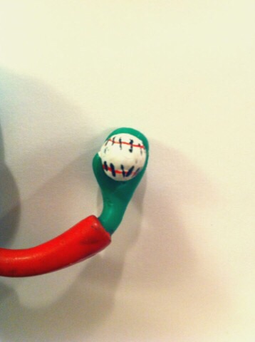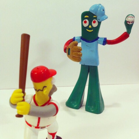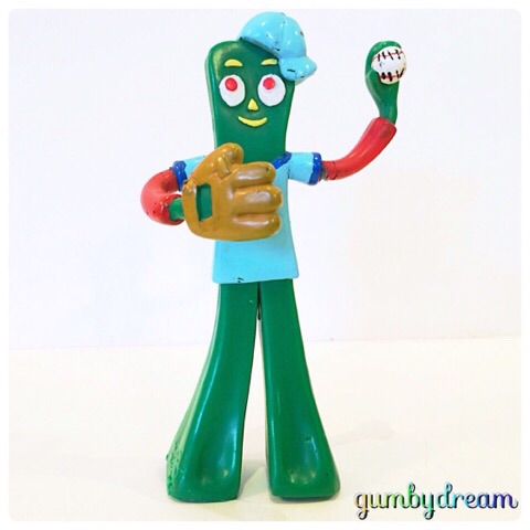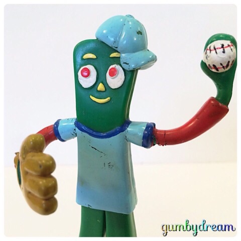 2012/10/05 Category : GUMBY Gumby Baseball Bendable 1980s イチローが移籍したヤンキースがアメリカン・リーグの東地区優勝を果たしました!おめでとうございます!ヤンキース・ベアさんに登場していただこうかとも思いましたが、まだまだ地区優勝。これからディビジョン・シリーズ、リーグ・チャンピオン・シリーズ、ワールド・シリーズとポストシーズンの試合が続きますので、ワールド・シリーズに勝つまでは出番を取っておくことにしました。で、代打はGUMBYさん。1989年のプロダクトですからVintageってことでいいんじゃないでしょうか?アリゾナのアンティークショップで見つけたものだったと思います。9.99ドルの値札を付けたまま。e-Bayでは20-25ドルくらいで出てますから、オッさんは買い物上手ってことですね。GUMBYには珍しくAPPLAUSE社製です。APPLAUSE社も版権を持っていた時があったんですね。色付けは明らかに手書き。細かいところは雑な仕上がりです。中国製とは言え、80年代にもなればもっとクォリティが高いはずなんですが…。まぁVintage感が演出されていていいのかもしれません。ボールの縫い目なんか笑っちゃうくらいの出来栄えで、かえって微笑ましく思えるほどです。こんなGUMBYさんをアンティークショップの片隅いで見つけた時の高揚感は伝え切れませんねぇ。野球つながりということで、以前に紹介したHommerさんとの対決ショットを撮っておくことにしましょう。©1989 PREMA TOY CO., INCAPPLAUSE™CHINA ©2011-2015 GUMBYDREAM Created with flickr badge. http:// PR