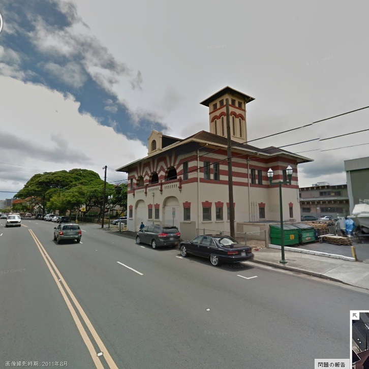 Makiki Fire Stationも1929年に建て直しちゃいましたので、現存する最古の消防署は1901年設立のPalama Fire Station。ここはKalihi Palama Areaと言ってダウンタウンから少し空港側に行ったH1周辺の地区。美味しいお店はあるようですが、観光客が足を踏み入れるエリアでは無いということですので、ストリート・ビューで探索です。