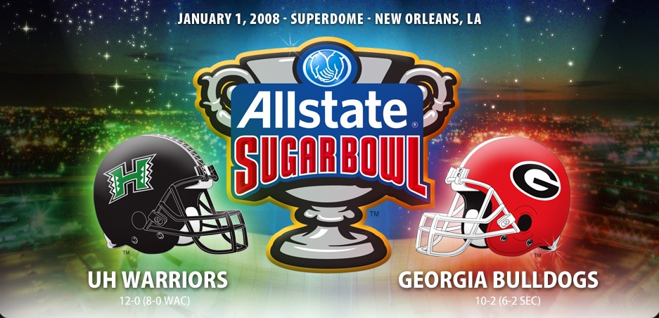 Hawai’i Warriorsは2008年にSugar Bowlに選ばれて初めての大舞台を踏みますが、残念ながら対戦相手のGeorgia Bulldogs(University of Georgia)に10対41で負けてしまいます。しかしSugar Bowlで出場するだけでもすごいんですよ。