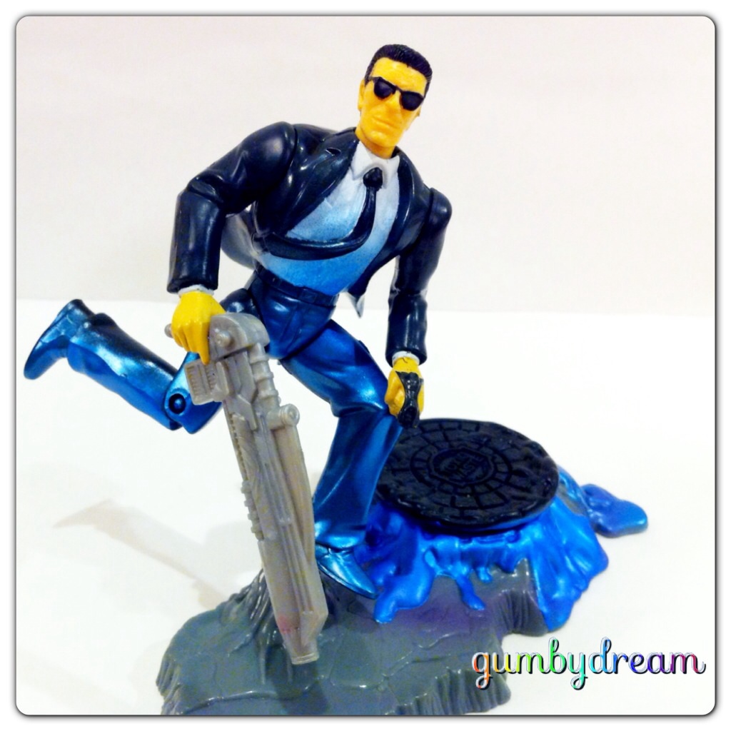 2013/10/13 Category : Movie Character MIB "Street Striker Kay" 1997 昨晩に続き、MIBよりトミー・リー・ジョーンズさんが演じた"K"をご紹介しましょう。 これもGaloob社の1997年のプロダクト。"K"がマンホール・エイリアンと戦っているところのようです。 マンホールを開けると、ほら、マンホールがエイリアンだったりするわけです。 しかし、この顔でトミー・リー・ジョーンズを連想しなさいっていうのはムリがありますよね。 Lewis Galoob Toys, Inc.は1954年に創業された米国の玩具メーカーで、本拠地はSouth S案Franciscoにありました。主にビデオ・ゲームを製作していて、Game Genieというのがヒット商品らしいのですが、オッさんはゲームを一切やらないので、なんのこっちゃかわかりません。 1980年代から1990年代にかけては、アクション・フィギアの分野にも進出していたらしく、A-TeamやStar Trekなんかをリリースしていたようです。Micro MachinesというシリーズではSTAR WARSのメカなんかがあって、オッさんの家にも数体が確認されています。 1999年にHasbro社に買収されて会社としては消滅しています。Hasbro社はGaloobのブランドだけを残し、トランス・フォーマーやSTAR WARSのグッズなんか出しているようですよ。 このMIBシリーズは1997年のプロダクトですからGaloob社末期の作品ということになります。 さて、秋の夜長の映画鑑賞は、妻と一緒にクサナギ君の「任侠ヘルパー」にしました。 2012年の作品で、2009年に放映されていたフジテレビのドラマを映画化したものです。妻と「カル~く邦画でも観ようか」といって選んだのですが・・・・。 ドラマの延長だと思ったので、カル~くと思っていたのですが、どっこい、かなり「ガッツリ」した映画でしたね。ストーリーもドラマとは関係無く、クサナギ君が「極道でヘルパー」という役を演じるところだけが同じという別物。 高齢者社会の問題をザックリ掘り下げてたりして、なかなか見ごたえのある作品だと思います。ある意味、期待を裏切られました。 フジテレビさんも本気を出せば、いい作品を作れるじゃないですか。ドラマも頑張って欲しいもんですね。 最後に、話を元に戻して、昨日ご紹介した"J"さんとの2-ショットを撮っておきましょう。 ©2011-2015 GUMBYDREAM Created with flickr badge. http:// PR Comment0 Comment Comment Form お名前name タイトルtitle メールアドレスmail address URLurl コメントcomment パスワードpassword