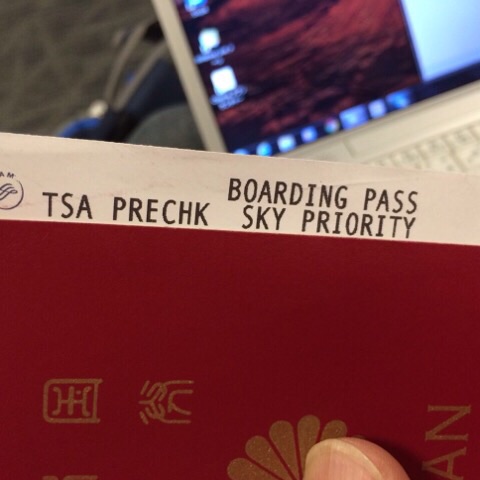 DELTAの国内線のカウンターでチェックインして手荷物検査場へ。手荷物検査の入り口でTSAの人から「あなたのチケットはTSA Pre Checkなのであちらのレーンに行って」と言われ、妻と二人でそのレーンに言ったら、「Pre Checkはオッさんだけだから妻は戻って」ということになり、オッさんはPre Checkレーン、妻は一般レーンということになりました。