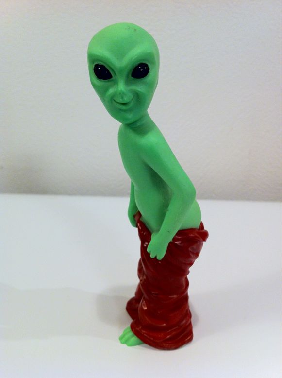 2011/11/24 Category : Another Character Green Alien (The year is unknown) 見たまんまですが宇宙人さんです。いつ頃、どこからいらっしゃったか…記憶にありません。もしかしたら彼に記憶を消されたかもしれませんね。日本のお店で出会ったのかもしれません。海外で出会ってたら妻がが連れて帰る事を認めるはずありませんから。この宇宙人さんはGREYSというタイプらしいです。ロズウェル事件やアメリカ人が宇宙人に誘拐されたという話に必ず出て来るタイプです。どうやら小さいらしく、LITTELE GREYSとも呼ばれます。オッさんはLA→Death Valley→Las Vegasとドライブ旅行をした時に、Route95という道を通ってDeath ValleyからLas Vegasに移動しました。この道こそ、宇宙人マニアの聖地、AREA51に沿って走る道なのです。AREA51とは米軍の基地ですが、公に存在を認めていないとかで、北米に墜落したUFOを隠しているとかの噂が絶えない基地です。映画、インディペンデンス・デイでも出てきますよね。確かに何にもないネバダの砂漠を走る道でしたから宇宙人が降りてきても不思議じゃないとこですが。AREA51に関連した土産物屋なんかもポツポツありましたが、ちょっとヤバイ感じでしたのでお勧めはできません。忘れられないのは『エイリアン・ジャーキーあります』っていう土産物屋の看板があったことですね。バカウケでした。後ろから見るとこんな感じです。ペロっと出しちゃってます。 ©2011-2015 GUMBYDREAM Created with flickr badge. http:// PR Comment0 Comment Comment Form お名前name タイトルtitle メールアドレスmail address URLurl コメントcomment パスワードpassword