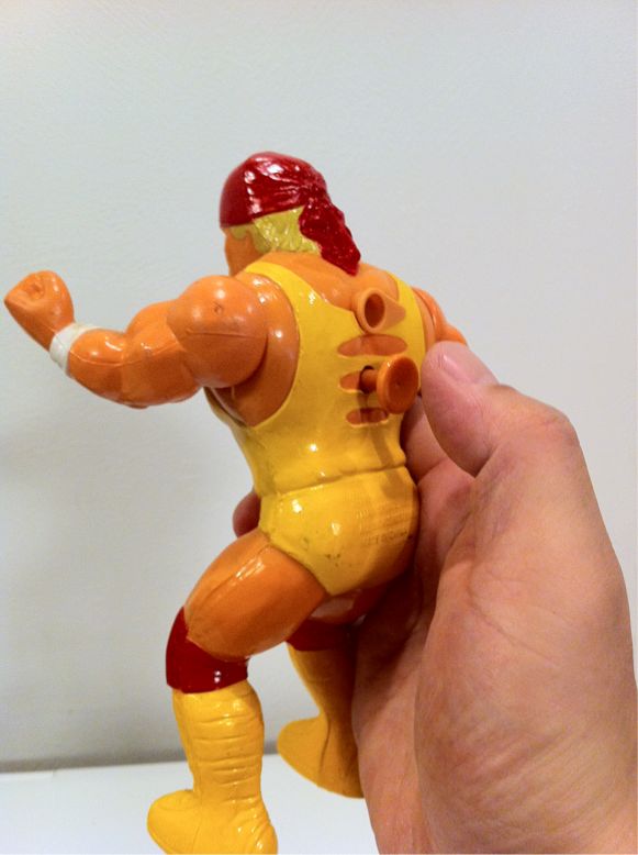 2011/11/25 Category : Another Character Hulk Hogan Squirt Gun 1990s 明日には妻が帰国してしまいますのでオッさんナイツ最終日です。オッさんナイツ最後の登場は1990年製のハルク・ホーガンさんです。ハルクは言わずと知れたプロレスラーで、米国のWWF、WWEで活躍してました。現在はTNAというところに所属して、未だ現役で頑張ってます。1980年〜1983年には新日本プロレスでも活躍しましたから、日本でも熱狂的なファンは多いですよね。”アックスボンバー”という必殺技に聞き覚えがある方もいらっしゃるんではないでしょうか?2005年にはWWEの殿堂入りをされています。このハルクさんは1990年製ですから、WWF時代の最後のあたりですね。妻はこのようなマッチョな男クサイ方々は大嫌いです。帰国してブログみたら怒るでしょうね。フフフ。このハルクさんは実は水鉄砲です。背中の突起をピコピコ押すと、口から水がピュピュと飛び出します。オッさんはこのようなふざけた物が大好きですです。ハルクさんの背中の突起はこんな感じです。©1990TITAN SPORTS.INCALL RIGHTS RESERVEDMADE IN CHINA ©2011-2015 GUMBYDREAM Created with flickr badge. http:// PR Comment0 Comment Comment Form お名前name タイトルtitle メールアドレスmail address URLurl コメントcomment パスワードpassword