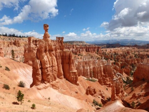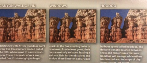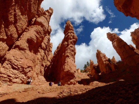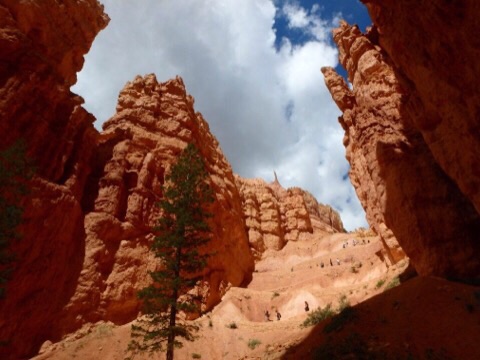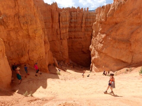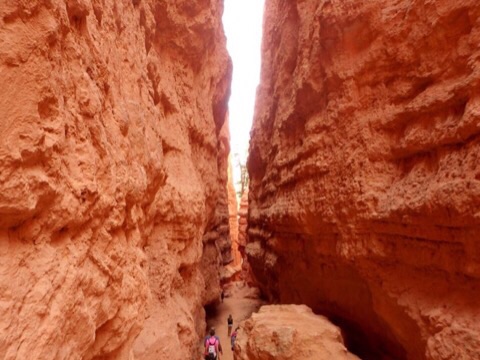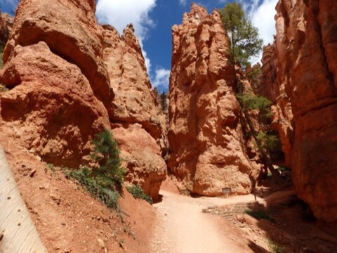 2014/08/07 Category : オッさんの旅日記(海外編) 2014 Summer Vacation in Utah "Day5 #1" 今日は5日目。雲がちらほらとありますが、まぁ「晴れ」と言っても良いでしょう。ここからは雨の予報も無いので天気の心配はいらなさそうです。ここも一泊ですからチェックアウト。朝食付きではないので朝食はホテルの隣にあるCanyon Dinerというファスト・フードっぽいお店でいただくことにしました。オッさんは巨大なパンケーキ、妻はハム&チーズ・ベーグルというアメリカンな朝食にしてみました。いいですね、好きですよ、こうゆうジャンクな朝食。今日は色々と盛りだくさんの企画がある日。まずは再びBryce Canyon National Parkに入り、キャニオンの下まで降りるトレイルに挑戦です。スタート地点は昨日も訪れたSunset Point。そこからNavajo Loopという1.3マイルつまり、約2Kmのループ状のトレイルに入ります。距離はそれほど長くありませんが、なんせキャニオンの下まで行くトレイルですから気合を入れなければなりませんね。まずはキャニオンを降りていきます。いったいどこまで降りるのか?と不安になるくらい、先が見えない奈落の底へのハイキング。初っ端から膝がガクガクになってしまうというコースですが何とか降りきります。降りてきた道を振り返ってみるとこんな感じです。奇妙な岩がニョキニョキと生えているのがわかりますねぇ。上から見るよりも下から見たほうが迫力あります。ちょっとしんどいですけどこのトレイル、お勧めですよ。この奇妙なニョキニョキ岩の事を”HOODOO”と呼ぶのですが、厳密に言うと、その成長段階ごとに呼び方が変わるんだそうです。Bryce Canyonのガイドブック載ってた解説はこちら。FIN→WINDOWS→HOODOOと成長するらしいです。キャニオンの下まで降りると、そこはWall Streetと呼ばれるポイントが待っています。NYCのWall Streetではなく、単に「壁の道」っていう理解でいいんでしょうね。Wall Streetを通り過ぎると、なにやら大木に出くわします。生命力ってすごいですね、太陽の光を求めてグイグイ伸びていったんでしょう。岩だらけの場所を抜けると、岩山もそれほど高くなく、草木もチョコチョコある開放感のある場所に着きます。乾いた川の跡がありましたから、ここがキャニオンの底なんでしょう。HOODOOが乱立する場所では生命の気配がありませんでしたが、ここにはリスさんなど普通に生活しているようです。本当はプレイリー・ドッグとか見れたら良かったんですけど、そうそうお目にかかれる方々でもないようですから、リスさんで我慢しておきましょう。このトレイルはループ状ですので、川底ハイキングをしばらく楽しんだ後は再び岩山エリアに戻ることになります。今度は延々と上り坂。さすがに肩で息をする感じになりますが、見上げればそこは絶景。ゆっくり、休みながら行けば問題はありません。子供やお年寄りもけっこういらっしゃいましたから。岩山の谷を上りきるとパっと視界が広がり、右手にFINやらWINDOWSやらHOODOOやらが乱立しているエリアに出てきます。自然が作り出した風景なのですが、都会のビル群のように人工構築物っぽく見えるんですよね。または発掘された古代都市とか。そしてついにゴール。たった2Kmですが高低差もありますから、けっこう歩き応えありましたよ。午前中に歩いておいて良かったと思います。これ、午後の日差しが強い時間帯だったらダウンする人もいるかもしれません。ハイクを楽しんだ後は今日も南に移動。昨日通ってきたUT-12をさらに南へ下ります。しばらくは何にもないところをドライブ。雲が低くて「地球って丸いんだなぁ」と思わせる光景。晴天も気持ち良いですが、こんな空も悪くありませんね。しばらく走ると辺りが茶色い岩になってきます。ここは"Red Canyon"という場所。名物の茶色い岩山をアーチ状にくり抜いた小さなトンネルもあります。ちょっと車を止めて見て見ると、まるでディズニーランドのビッグ・サンダー・マウンテンの作り物のような風景です。ビッグ・サンダー・マウンテンはセドナがモデルと言いますが、ここの方が似ているような気がしますね。ここまで来るとDIXIE National Forestも終わりのようです。ようやく看板を撮る事ができました。ついにUT-12の終点まで辿りつきました。ここからはUS-89を使って南に向かっていきます。今日は盛りだくさんの日でしたので2回にわけて書くことにします。明日、Day5の#2として午後からの出来事を書いていきたいと思います。 ©2011-2015 GUMBYDREAM Created with flickr badge. http:// PR