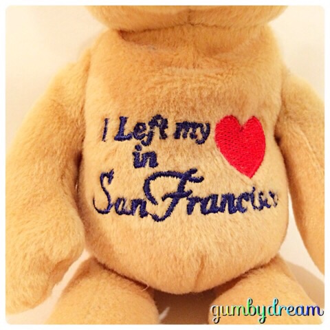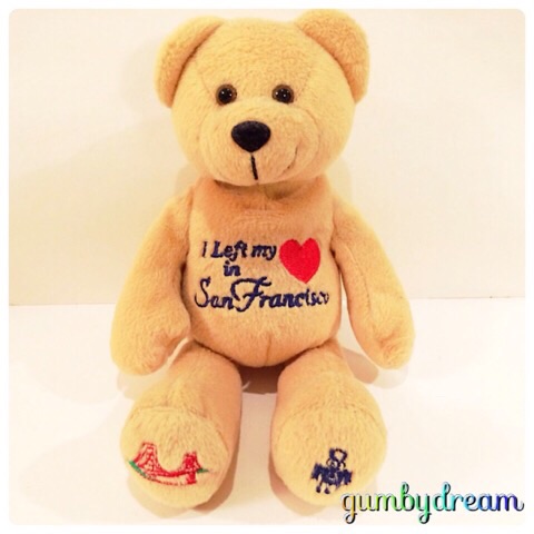 2014/09/14 Category : BEAR Timeless Toys Quarter Beans "SF Bear" 2006 昨日はTimeless Toysのニューヨークさんに登場いただいたので、今日はいつもニューヨークさんの隣に座っているサンフランシスコさんに登場いただくこととしました。妻の記憶によればサンフランシスコのフィッシャーマンズ・ワーフからいらっしゃったとのこと。ん?昨日のニューヨークさんと何が違うのかって?まずはお顔立ち。同じTimeless Toys社製のQuarter Beans®ですから、お顔だけ見てニューヨークさろんとサンフランシスコさんを見分ける事は不可能です。ではニューヨークさんと違う部分をご紹介します。まずはお腹の"I Left my Heart in SanFrancisco"と書かれた刺繍。ご年配の方はわかりますよね。「霧のサンフランシスコ」という邦題が付いている1954年トニー・ベネットさんの名曲の題名です。直訳だと「ボクの心はサンフランシスコに置いてきてしまった」という意味なのですがね・・・。ちなみに「思い出のサンフランシスコ」はフランク・シナトラさんですからお間違えなく。"I Left my Heart in SanFrancisco"の動画がYouTubeにありましたので貼り付けておきます。で、サンフランシスコさんの話に戻りましょう。左足にはGolden Gate Bridgeの刺繍。右足はニューヨークさんと同様にTimeless Toysのロゴマークが書かれています。背中のタトゥーはサンフランシスコ名物のケーブルカー。彼もコテコテの観光仕様となっております。せっかくですから、ニューヨークさんとの2ショットも撮っておきましょう。こうやって見ると双子のようですね。でも双子ではありません。確かにTimeless Toys社製のQuarter Beans®の同じシリーズなのですが、ニューヨークさんは2004年製、サンフランシスコさんは2006年製となっています。つまりニューヨークさんが兄さんでサンフランシスコさんが弟ちゅうこと。よく似た兄弟ですこと。オッさんは二日連続のゴルフを楽しみ、オッさんのゴルフバックはオッさんより一足先に東北に送られました。送った先はなんと男鹿半島。オッさん、来週は秋田でお客さんとゴルフの予定が入ってるんですねぇ。男鹿半島だけにナマハゲいるかな?明日はゆっくりして、夜の新幹線で仙台に戻る予定にしてます。TIMELESS TOYS INC.©2006 TIMELESS TOYS INC.HAYWARD, CA 964545REG. NO. PA 9627PRODUCT OF CHINA ©2011-2015 GUMBYDREAM Created with flickr badge. http:// PR Comment0 Comment Comment Form お名前name タイトルtitle メールアドレスmail address URLurl コメントcomment パスワードpassword
