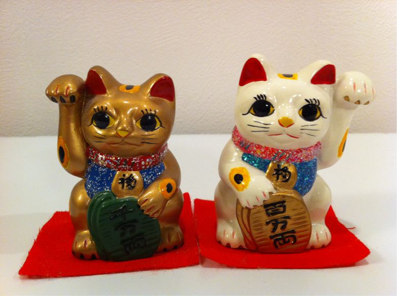 2012/01/01 Category : HAWAII Hawaiian Lucky Cats 2000s 明けましておめでとうございます。新年早々ですので、縁起物ということで招き猫さんに登場いただきました。向かって左にいらっしゃる「金運招き」さんはオアフのイリカイホテルの斜め前あたりにある土産物屋さんからいらっしゃいました。我が家の招き猫さん第1号となります。向かって右にいらっしゃる「人招き」さんはオアフのカラカウア通りのワイキキビーチに面した韓国系の方が運営する土産物屋さんからいらっしゃいました。招き猫はハワイでも一般的で、店先に何気なく置いてあります。多分、その昔に日系の方が持ち込んだんだと思いますが、今や、WELCOME CATとかLUCKY CATとか呼ばれ、ハワイに浸透してます。中にはDOLLER CATという小判の代わりにドル硬貨を抱えているものまであるんですよ。店先ではよく見るのですが、なかなか出会えなくって我が家にはいらっしゃってませんが…このお二方、ハワイらしいと言えば、首回りのラメラメです。顔もどちらかというと穏やかな感じるかもしれません。先ほど、BSフジで木梨憲武さんのハワイ旅番組を妻と観ていて、また、ハワイを思い出しいてしまいました。あ〜、ハワイに行きたくなってきた!今頃は芸能人でいっぱいなんですかね?我が家にはこの方以外にも招き猫さんがいらっしゃいます。全員集合するとこんな感じです。奥の真ん中の黒猫さんは2009年に博多に遊びにいった時に太宰府天満宮でっ出会った方。手前の黒猫さんと白猫さんのペアは、その旅行の帰りに福岡空港で出会った方です。手前正面は、近所のスーパーでお正月用の小さな鏡餅を買ったら、鏡餅の上にチョコンと乗ってらっしゃった方となります。この方々は我が家のTVボードに鎮座されており、我が家を見守ってくれています。感謝、感謝。ちなみに、なにげにいらっしゃるABC STOREのクマさんに気が付いた方はお目が高いですよ。今年も良い年でありますように。 ©2011-2015 GUMBYDREAM Created with flickr badge. http:// PR Comment0 Comment Comment Form お名前name タイトルtitle メールアドレスmail address URLurl コメントcomment パスワードpassword