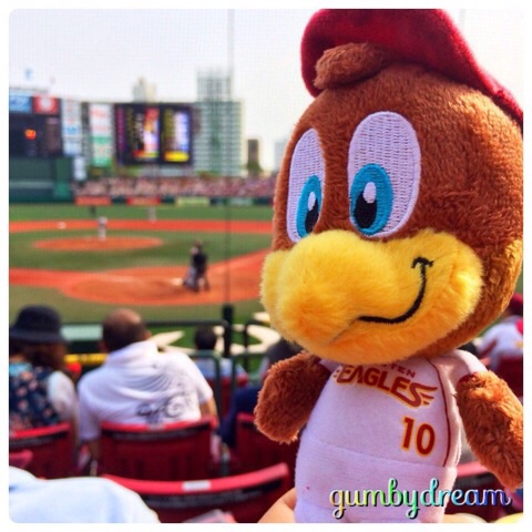 2014/05/24 Category : Another Character Rakuten Golden Eagles Mascot "Clutch" 2014 オッさんの会社がお客様から楽天VS中日戦のチケットいただき、社内抽選となりました。もらえたらいいなぁくらいに思ってエントリーしたら難関を突破!さっそく歩いて10分にある昔の宮城スタジアム、今の楽天Koboスタジアム宮城に妻といってまいりました。 ということで、今日登場いただくのは楽天Golden Eaglesのマスコット、クラッチさん。 Eaglesというだけあってワシさんです。1.8頭身と顔が異常に大きいっすよね。楽天のマスコットはこのクラッチさんと女の子のクラッチーナさんがおり、回が変わるたびに球場を元気に走り回っておりました。 今日、頂いた席はバックネット裏のシーズン・シート。ステイタスは「プレステージ」という上から3番目の良席でした。元々宮城球場は選手までの距離が近いという球場なのですが、バックネットのすぐ裏の席でしたから臨場感ありましたねぇ。 この「プレステージ」というステイタスは何と飲み物がタダ。オッさんと妻でビールやらレモンサワーやら食後のコーヒーまで飲みまくり。天気も良かったので少々ベロンベロン。周辺のお客さんも飲み放題ということでかなりベロンベロンの方が多かったですね。 妻も仙台に来て初めての大型イベント。普段は「野球なんかキライ」と言ってましたが、なんせ昭和生まれ。子供の頃に身に着けた野球知識の貯金がありますし、学生時代は森監督時代の西武ライオンズファンだったとか。そんなわけでノリノリで観戦しておりました。 せっかくですから楽天グッズも購入。まずはオッさん用のCAP。日本のCAPは大きなサイズがあっていいですね。頭の大きなオッさんにもジャストフィットです。 そして妻は何日も前から狙っていたというクラッチのチケットホルダー。このチケットホルダーを購入した時点が妻のテンションMAXだったようですね。 ©2011-2015 GUMBYDREAM Created with flickr badge. http://