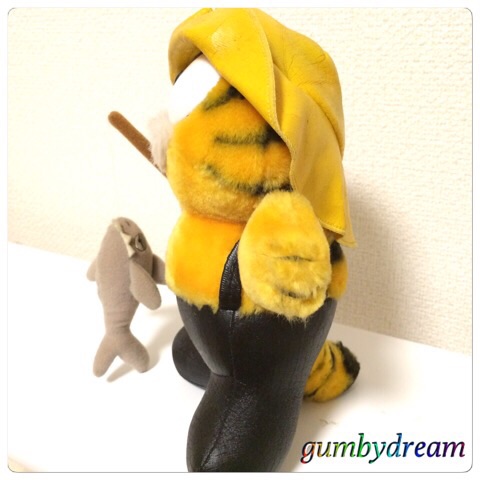 2015/06/24 Category : GARFIELD Fisherman Garfield 1980s 今日からはPhoenixのThe Brass Armadillo Antique Mallからいらしゃった方々の紹介となります。まずトップバッターは猟師姿のガーフィールドさんのPlush Toy。すごいインパクトですよね。ちょっと観察してみましょう。まずはお顔。よく見ると白いお髭をたくわえておいでです。なかなかヒゲ面のガーフィールドさんってお見かけしませんよね。そして黄色いラバーの帽子にラバーのパンツという西洋風猟師さんのコスチューム。脱げるわけではなく完全に縫い込まれている状況です。そして右腕には釣竿と魚?サメ?。おや?この釣竿にサメというのはどっかで見た事ありますよね。そうです、以前にご紹介したラスベガスからいらっしゃったカナダのイヌイットさん仕様のガーフィールドさんもこの釣竿とサメを持ってましたっけ。同じ時期のプロダクトなのかもしれません。イヌイット仕様のガーフィールドさんタグにはFun Farm by Dakinの文字。Dakinのタグ研究を続けるオッさんですが、これまでR.Dakin & Companyと書かれているのが1987年以前で、それ以降はDakin.Incという見分け方しかしていませんでしたので、このFun Farmというキーワードで調べてみました。米国の商標登録資料を検索したところ、1975年11月18日にR.DAKIN & COMPANYが商標登録をしていました。きっとDAKIN社のヌイグルミのブランドの1つだったんでしょう。数々の動物たちのヌイグルミをリリースしていたようです。さらに調べていたら面白いポスターを見つけました。拡大すると文字がつぶれてしまうので何が書かれているのかはわかりませんが、見出しからするとFun Farmというシリーズにガーフィールドさんが加わった時のポスターのようです。下段にFun Farm is Serious Businessと書かれています。「Fun Farmは真剣な取り組みです」という意味なら何か慈善的な事業だったのかもしれませんが記録が残っていないので何とも言えません。このFun Farmのタグが付いているガーフィールドさんは東京の家にもいらっしゃいます。以前ご紹介した我が家のニューメキシコからいらっしゃったガーフィールドさんとフェニックスからいらっしゃった大きなアーリーンさんです。ニューメキシコから来たガーフィールドさんでかいアーリーンさんまたひとつ勉強になっちゃいましたね。引き続きDAKIN社の研究を続ける事にします。あ、Fun Farmを調べている時にみつけたポスターをもう1枚。以前にご紹介したLove Struck!というTシャツを聞いたガーフィールドさんの正体。バレンタインの時にガーフィールドさん付きの花を贈るというプロモーションがあったようです。Love StruckのTシャツを着たガーフィールドさん我が家のガーフィールドさんも誰かが愛する人からバレンタインの花と一緒にもらったんでしょうね。後々、アンティークショップに売られちゃたわけですからちょっと悲しい物語ですが、ちゃんとオッさんが保護して他のガーフィールドさんと仲良く暮らしてますのでハッピーエンドってことにしておきましょう。さてさて近況報告。またまたサクランボを頂いちゃいました。サクランボはシーズンが限られているので集中しちゃうんですよね。これも美味しくいただこうと思います。GARFIELD1972,1981 UNITED FEUTURE SYNDICATEM INC.FUN FURM NY DAKINSAN FRANCISCO,CAPRODUCT OF KOREA.PA REG, NO,118$14.99 ©2011-2015 GUMBYDREAM Created with flickr badge. http://