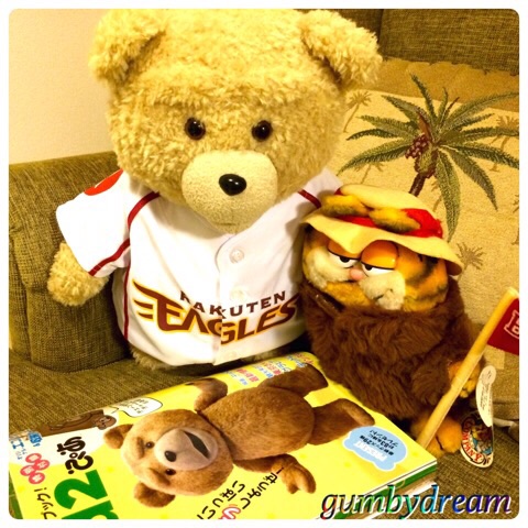 2015/08/27 Category : GARFIELD Garfield and Company B.C.O.C Plush 1978-1987 今日はThe Brass Armadillo Antique Mallからいらっしゃった大物をご紹介したいと思います。このGarfieldさん、何を表現しているのか?何をしたいのか?全く意味不明ですがAntique Mall内でも存在が強烈なんで連れて帰ってきちゃいました。ちょっと観察してみましょう。まずはタグ。GARFIELD AND COMPANYというシリーズらしいですね。調べてみると我が家にはいませんがこのシリーズで何種類かのGarfieldさんのPlushがリリースされているようです。タグの裏面にはR.Dakin & Companyの文字。R.Dakin時代ですから1978年から1987年のプロダクトですね。このシリーズのGarfieldさんを検索してみると恐ろしく個性的な皆さんで、それぞれのGarfieldさんが何をしたいのかが全く意味不明という共通点があります。どこかのAntique Mallで見つけたら確実に我が家に来ちゃうでしょうね。で、このGarfieldさん。まずはお顔。前回調査した通り、R.Dakin時代の目をしてますね。謎のハットを被っているのが特徴です。そして異様なのがこの毛皮のジャケット。ハットの感じからエスキモー系では無いとは思いますが・・・。毛皮とハットのミスマッチがたまらん感じもします。そして手にはB.C,O.Cの文字の入ったフラッグを持ってます。タグの解説によればBig Cat On Campusの略語のようです。直訳だと「キャンパスのデカイ猫」。この言葉に何か意味があるのかと思って色々検索しましたがヒットせず。何かをモジってるのかもしれません。仙台の夜は20度以下になってきてますので毛皮もちょうど良いかもしれませんね。妻はまだ東京にいますが、妻が発注したAmazonの本が届きました。どうやら”ted 2”のファン・ブック。オマケにtedのエコバックと収納ポーチが付いてるみたいです。中身は妻が仙台に帰ってきてから見ることにしましょう。我が家のテッドさん、実は一作目の映画もまだ見てなくて、自分のキャラがわかってないみたいなんです。汚い言葉だけは自然に発する我が家のテッドさんですが、本の中にtedさんが何者かが書かれてたらびっくりしちゃうかも・・・・。その前に隣にいる謎のGarfieldさんに引いてますけどね。既に表紙を見て「モフモフって何だ?」と聞かれて困ってます。GARFIELD -B.C.O.C-(Big Cat on Campus)GARFIELD1978, 1981 UNITED FEATURS SYNDICATE, INC.R.DAKIN & CO.SAN FRANCISCO, CAPRODUCT OF KOREAPA REG.NO.118 ©2011-2015 GUMBYDREAM Created with flickr badge. http:// PR