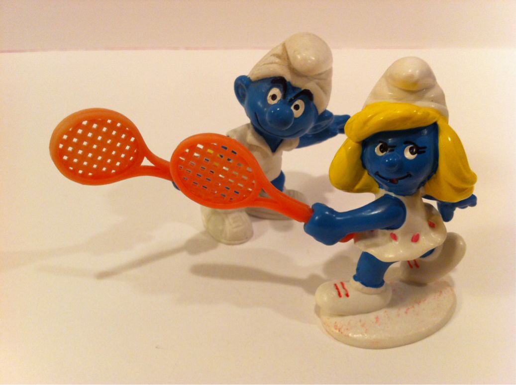 2012/08/05 Category : SMURF Tennis Smurf 1980s オリンピックもあと1週間で終わってしまいます。最後の1週間はメジャー競技の決勝戦が目白押しですね。テニスはウィンブルドンで開催されてていますが、普段はグリーンの壁が、オリンピックカラーに塗られていて、雰囲気が全然違います。女子はウィリアムズ選手の優勝。シャラポワ選手は残念でしたね。シャラポワ選手はロシア出身ですが、現在の拠点はカルフォルニア。母国での出場に加え、ロシアの旗手までつとめていましたので、気合が入っていたに違いありません。オッさんは女子シングルス決勝戦は見逃しましたが、準決勝のシャラポワ選手vsキリレンコ選手のロシア人対決は観戦しました。キリレンコ選手のことは知らなかったのですが、シャラポワ選手と同じような雄叫びをあげるんです。ですから、シャラポワとの試合は雄叫びだらけ…。あの雄叫びはロシア選手はみんなするんですかね。男子シングルスの決勝戦は、今、開催されているはずです。スイスのフェデラーとイギリスのマリーが対決しているはずなのですが、残念ながらTV中継が無いのでどうなっているのかは不明です。人気スポーツなんですから、日本人が出なくっても、せめて、決勝戦くらいはTVでやってくれてもいいんですけどねぇ。さて、テニスということでSMURFさんに出てもらいました。1981年のMADE IN CHINA製です。前回、スマーフェエットさんのテニス・ヴァージョンをご紹介した時に、スマーフさんは未入手と書いたのですが、よくよく我が家のスマーフ・コーナーを見てみたところ、スマーフがいらっしゃったではないですか!忘れててすいませんね。スマーフさんとスマーフェットさんのツーショットも撮っておきましょう。今日は体操の内村選手の種目別銀メダルの演技と、フェンシングの団体戦を観ました。フェンシングは面白いですね。ルールが少し分からないところもありますが、観ていて楽しければいいんです。電気判定装置みたいのが更に進化していてビックリ。なんか宇宙飛行士みたい。この装置が無かった時代はどうやってジャッジしてたんでしょう?あんな速い動きを見極めるなんて、審判の動体視力はすごいものがあったんでしょうね。あ、今、フェンシングの団体戦で延長戦を日本が制して決勝進出が決まった!!すげ〜!これからも競技は続きます。あぁ、来週も寝不足になりますね。 ©2011-2015 GUMBYDREAM Created with flickr badge. http://