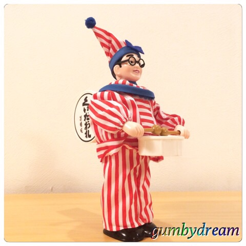2015/07/24 Category : Japanese Character Kuidaore Taro Wind-up Toy 2015 関西旅行会も終わったので東京の家に帰ってきました。妻は仙台ですからオッさん一人の東京滞在。関西から帰ってきたのでこの方に登場いただきましょう。ご存知「くいだおれ太郎」さん。くいだおれビルのお土産屋さんで見つけたので買っちゃいました。さっそく箱から出してみましょう。ディテールしっかり取ってますねぇ。お顔は意外にキュートだったりして。背中の太鼓もクールです。ゼンマイ仕掛けですから本物みたいに動くんですよ。なかなかイケてるプロダクトです。この他にビリケンさんのマグネットも買っておきました。オッさんの大阪土産はこの2点だけです。今日は遊覧船に乗ったりしましたがイマイチな感じ。回遊館にも行きましたが時間が40分しかなく駆け足の見学です。ジンベエ鮫さんは動画で撮ってみました。オッさんに気付いたのか途中でこっち見てくれるサービス付き。何代か代替わりしてるらしく、ずいぶん前に妻と見たジンベエ鮫さんよりかなり小振りな気がします。最後の観光スポットは日本一の高さを誇る「あべのハルカス」。横浜のランドマーク・タワーを抜いたんですね。知りませんでした。300メートル、60階の展望台に来ました。ガラス張りでオッさん苦手なタイプ…。周りに高い建物が無いのではるか彼方まで見通せます。好きな人は好きなんでしょうね。オッさんは早々に退散です。これから東京の家を掃除して、週末はこちらでゴルフ三昧の予定です。©c-t/TAROプロ販売元 判ピーアール株式会社製造元 イワヤ株式会社MADE IN CHINA ©2011-2015 GUMBYDREAM Created with flickr badge. http://