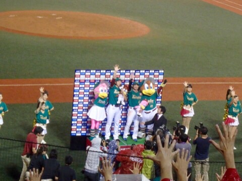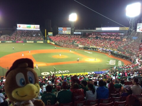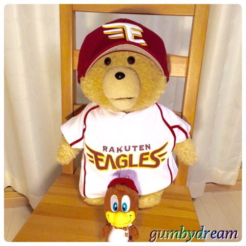 2015/08/14 Category : Japanese Character Mascot of the Tohoku Rakuten Golden Eagles "Clutch" 2014 今日はアリゾナから来た方のご紹介を一時中断して妻の大好きな東北楽天ゴールデンイーグルスのマスコット、クラッチさんに登場いただきましょう。オッさんが仙台に赴任した昨年、妻とイーグルス戦を観に行った時にコボスタのショップから連れて帰ってきて、今では我が家のソファーで我が物顔で座っておられます。球団設立の2005年からイーグルスのマスコットになったクラッチさん。「EAGLE=イヌワシ」さんで英語の「CLUTCH=みんなの心をわしづかみ」にワシをひっかけてるんだとか。背番号は10。これはイーグルスの永久欠番なんだそうです。他の球団みたいに有名選手がいたわけでは無く、「10人目のレギュラーはファン」という意味。クラッチさんはファン代表として10番を付けてるんだそうです。今日はイーグルスvsマリーンズのチケット買ったんで、会社をフレックス退社して妻とコボスタへ。ハワイフェアを開催中でノース・ショアのMatsumoto Shave Iceなんかも出店。今日は小雨が時折降りますし気温は23℃くらいと涼しいのでShave Iceは遠慮しておきました。せっかくですからハワイアン・フェアの出店でガーリック・シュリンプのプレートランチとスパム・むすびを買ってみたんですが…ガーリック・シュリンプのプレート、貧相すぎてがっかりです。マラサダも売ってたのでデザート用に購入。これはなかなかイケてましたね。試合は後藤とペーニャのホームランも出て楽天がリードしたまま進みます。もちろんクラッチさん一緒に応援に来てますよ。イーグルスの夏は「東北グリーン」のユニフォームなので7回裏の風船飛ばしもグリーンの風船です。試合は4-1でイーグルスの快勝。今シーズン、オッさんと妻が観戦した試合は負けなしです。毎回こうゆう試合してくれれば妻の機嫌も良いんですけどねぇ。これまでデーゲームの観戦が多かったので夜のスタジアムは久し振り。ライトアップされてて素敵ですね。コボスタは米国のボールパークを目指してるんだと思いますが古い球場をうまく改装してると思います。帰りに本物のクラッチさんがウロウロしてみんなと写真を撮ってました。子供達に負けじとオッさんと妻もちゃんと一緒に撮ってもらいました。クラッチさんが大好きでたまらない妻は「レインコート着てもカワイイ〜」とテンション上がりまくりです。留守番のtedさんにもお土産買ってきました。人間の赤ちゃん用のユニフォーム。ピッタリ・サイズとはいきませんが似合ってるんじゃないでしょうか?さすがにtedは球場に連れて行けませんから今後はこれを着て留守番してもらおうと思います。イーグルス、このまま連勝してCSに絡んでほしいですね。RAKUTEN EAGLESMade in China ©2011-2015 GUMBYDREAM Created with flickr badge. http:// PR