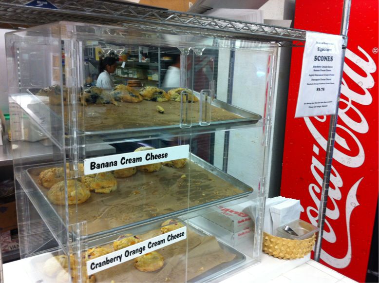 今日は早起きしてMonsarrat AveのDiamondhead Grillで朝食を買い込みます。オッさんと妻は「お腹まわりの脂肪が気になる」とは言いながら、スーパー・ハイカロリーな「ブルーベリー・チーズ・スコーン」と「スパムむすび」を買ってしまいます。いいんです、旅行中でそれなりに動いてるし、ダイエットなんか帰国してからやるのです。