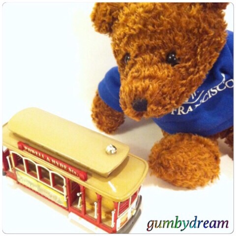 サンフランシスコ関係者ということで、サンフランシスコのケーブルカーさんとの記念写真を撮っておきましょう。この手のベタ土産は我が家にたくさんあるんで、小道具にはこと欠きません。