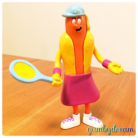 2014/07/05 Category : Another Character Nathan's Hot Dog Mascot "The Frankstears" 1996 ニューヨークのコニー・アイランドにあるNathan's Famous Hot Dogで、毎年恒例となっている”Nathan’s Hot Dog Eating Contest”が開催されたというNEWSが出ていますね。 ということで、今日はNathan'sのマスコットであるThe Frankstersさんに登場いただくこととしました。 1996年のMeal Toy Bendable。女性のテニス・プレーヤーのバージョンです。よく見てくださいね。ちゃんと体がHot Dogでしょ? Nathan'sのThe Frankstearsとうキャラクターは、恥ずかしながらオッさんのチェック網から漏れていた方。まぁマイナーな方ですからしょうがないですが、オッさん的にど真ん中のキャラクターですし、今後も出会ったら即買いしようと決めているアイテムです。 このシリーズは存在が確認できるだけで12種類。様々なスポーツ・ユニフォームに身を包んだThe Frankstearsさんがいるんです。オッさんはこのテニスプレーヤーさんしか持ってませんので、コレクションとしてはこれからですね。いったいどこで出会えるのか?今からワクワクしてしまいます。 さて、Nathan’sのHot Dog Eating Contestですが、その始まりはなんと1916年。最初の記録は12分間で13個という今となっては一般人でもいけそうな記録でした。 以降、米国独立記念日の7月4日に毎年開催されるようになりました。1916年から2007年までは12分間に何個食べれるかというルールで、2008年から10分間に変更となったようです。 これまでの最高記録はジョーイ・チェスナットさんという方が2013年に記録した69本。さて、今年の結果はどうなったでしょうか? 第98回となった2014年大会の優勝者は去年同様にジョーイ・チェスナットさん。なんと8連覇なんだそうです。残念ながら記録は61本で最高記録更新とはならなかったようです。 ちなみに女性の優勝者は日本人の須藤美貴さんという方。34個をたいらげたんだそうです。 YouTubeにアップされている今年の大会の模様はこちら。何かをムシャムシャ食べていますが、Hot Dogな感じはしませんね。 オッさんと妻は前回の旅行でLas VegasのNathan'sに立ち寄りました。その時もらってきて妻のお宝グッズとなっているナフキンとプラスチック・フォークと一緒にThe Frankstearsさんを撮っておきましょう。好きな方にしかわからないコレクションですかね・・・・。 オッさんは今日、雨の中の仕事ゴルフ。そして明日の夜には出張で秋田に向かわなければなりません。つかのまの週末を楽しむ事にします。 SINCE 1916Nathan’s1996 Nathan’s Famous, Inc.MADE IN CHINA ©2011-2015 GUMBYDREAM Created with flickr badge. http://