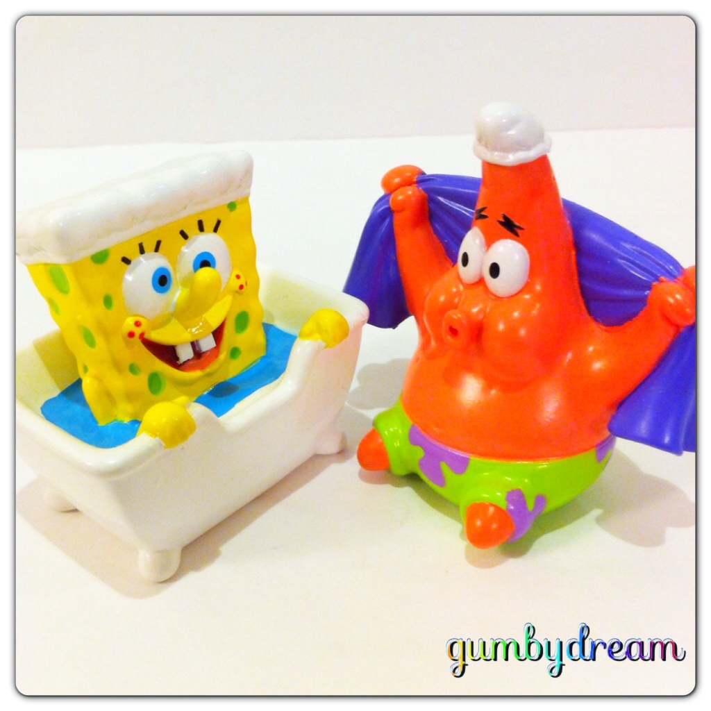 SQUIRTERというのは水鉄砲の事。お風呂の中でボブさんの中に水を含ませて押すと水鉄砲のようになるというプロダクトです。Munchkin社からは同時期に数種類のボブさんとパトリックさんが発売されており、我が家にも2~3体の方々がいらっしゃいます。