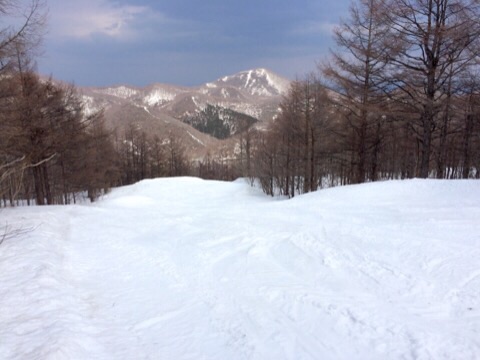 少し手前の泉ケ岳スキー場の雪は溶けていて既にクローズでしたが、このスキー場はこれだけ暖かくても全面滑走可能な積雪量。ベタ雪でしたが十分に楽しめました。