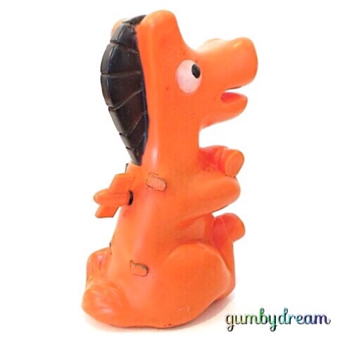 2012/03/08 Category : GUMBY Pockey Wind Up Rubber Toy 1960s 1966年製のポーキーさんです。アリゾナのアンティークショップからいらっしゃいました。1960年代のガンビー関係グッズにアンティークショップで出会うのは、オッさんにとってはホームランなのです。ゴルフで言えばロングホールで2オンして、長いパットも沈めてイーグルを取るようなものです。ゴルフをやらない人にはわからない例えですよね。しかも日本製ですので、日本男児として遠く異国の砂漠の街で同郷に再会する喜びもプラスされます。Wind Up Toyというのはゼンマイ仕掛けのオモチャのことで、このポーキーさんも背中にネジがついてます。ただ、コンディションが良くないため、どんな動きをするのかは全くわかりません…このように下の部分に何かが付いていいた気配があるのですが…ピコピコ跳ねるのか、グルグルまわるのか、まぁそんなとこでしょう。このプロダクトはガンビーとセットなのですが、残念ながらガンビーさんとはまだ出会ってません。きっとどこかで運命的な出会いをすることになるのでしょう。POKEYさんのようなキャラクターはSide Kickと言って主人公と行動を共にして主人公をサポートする役割を持っています。きっとこのPOKEYさんも相方のガンビーさんの発掘を願っているに違いありません。オッさん、頑張ります。1996Made in Japan ©2011-2015 GUMBYDREAM Created with flickr badge. http:// PR