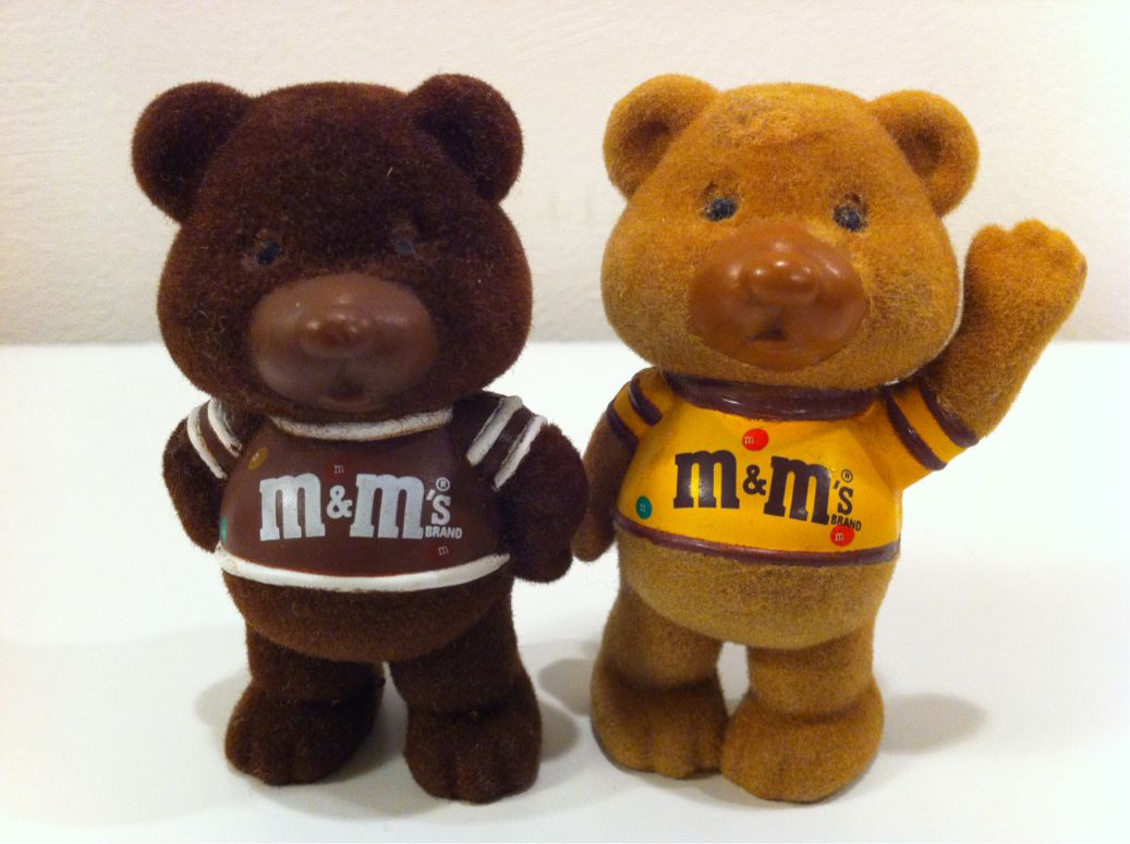 2012/03/18 Category : M&M'S M&M’s Chocolate Chum Bears 1980s 1989年製のM&M'Sクマさんです。オアフのアンティークショップからいらっしゃいました。M&M'sのプロダクトとしてクマというのは珍しいですよね。これはチョコに付いてるオマケではなく、キャラクターグッズとして売られていたものらしいです。この他にスニッカーズクマさんの存在も確認していますが、我が家にはまだいらっしゃっておりません。濃い茶色の方がPlain Bearさんで、薄い茶色がPeanut Bearさんとなります。おなじみのM&M'sのチョコに由来していると思われます。さてさて、このクマさんのモデルはどんなクマなのでしょうか?オッさんはまたまた調べました。北米大陸に住むクマは、北部に住むグリズリーと言われる灰色熊、わかりやすく言えばヒグマか、北から南にまんべんなく生息するアメリカクマと言われるAmerican Black Bearかのどちらかです。このクマさん達は体長が最大3mでいかついグリズリーがモデルという感じでもありませんね。では、アメリカクマか?となりますが、Black Bearと言われるからには黒クマさんなわけですから色がなんとも言えません。更に調べると、カルフォルニアの州旗になっているCalifornia Golden Bearというクマもいるのですが、残念ながら人間の乱獲により1920年代に絶滅してしまってます。ちなみにこのCalifornia Golden Bearさんですが、グリズリーや白熊と同じヒグマの一種です。体長はグリズリーの最大級の個体でも彼らの平均的な大きさだったというから、かなり大きなクマさんだったらしいですよ。さて、迷いますね。初心に帰ってAmerican Black Bearを調べていたら…色は黒というよりも濃い茶色だという事が判明しました。更に個体によっては薄い茶色の方もいらっしゃるというではないですか!このクマさん達はAmerican Black Bearがモデルということで間違いないでしょう。オッさんはまたもややり遂げました。ところで、Peanut Bearさんは左手を挙げてますね。左手を挙げている方々と言えば…とりあえず記念写真を撮っておきましょう。©1989U.A Pictures ©2011-2015 GUMBYDREAM Created with flickr badge. http:// PR Comment0 Comment Comment Form お名前name タイトルtitle メールアドレスmail address URLurl コメントcomment パスワードpassword