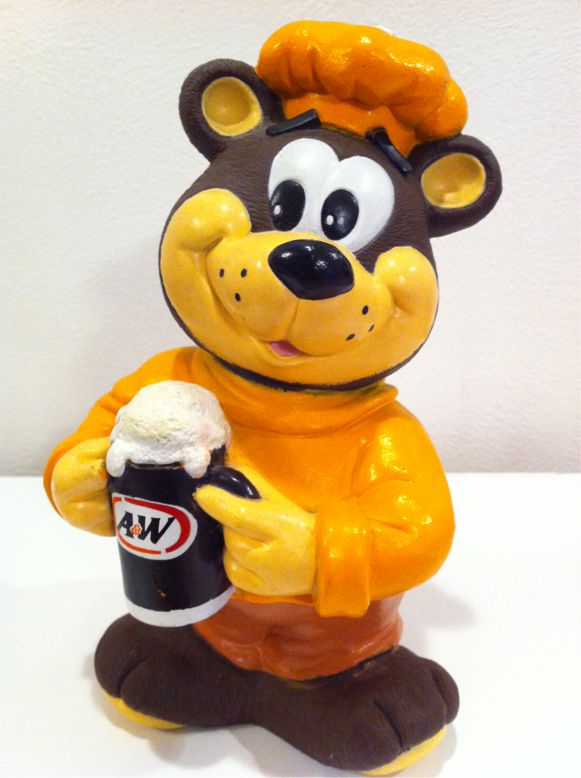 2012/03/31 Category : BEAR A&W Great Root Bear (The year is unknown) A&WのGreat Root Bearさんです。オアフのアンティークショップからいらっしゃいましたが、製造年は不明です。このベアさんは貯金箱になっていて、Meal Toyとして貯金箱2種類とぬいぐるみが出された時の物と思われます。A&Wは日本では沖縄にしかないから、なかなか馴染みがありませんよね。1970〜80年代に関東にもテスト出店したようですが成功せずに撤退。2000年代に都内で再出店したようですが、これまた撤退したんだそうです。A&Wは1919年にRoy AllenさんとFrank Wrightさんが立ち上げたチェーンです。だからA&Wなんですね。なんと、全米で一番古いフランチャイズチェーンなんだそうです。米国の占領下だった沖縄には1963年に上陸。1974年にはキャラクターとしてGreat Root Bearさんが登場しました。A&Wの売りであるRoot BeerとRoot Bearをかけたんですね。オヤジギャク系のネーミングです。北米旅行の時に時々みかけるのですが、入ったことがありませんした。2010年にカナダのカルガリーからバンフへドライブ旅行をした際、小さな街で始めてはいりました。あんまり期待してなかったのですが、これがなかなか美味しい…。たしかメニューがPapa BurgerとかMama Burgerとかそんなラインナップだったと思います。ルートビアが有名なんですけど飲まなかったですね。まだ飲んだことがないから、どっかでチャレンジしてみましょう。ルートビアは米国で炭酸飲料の3%のシェアを占めているらしいのですが、どんな味がするんでしょう?根強いファンがいそうな感じですが、味が想像できません。きっと、ちょっと病みつきになる味なんでしょうね。オッさんはドクター・ペッパーやチェリー・コークが大好きですから、もしかしたらど真ん中かもしれません。 ©2011-2015 GUMBYDREAM Created with flickr badge. http:// PR Comment0 Comment Comment Form お名前name タイトルtitle メールアドレスmail address URLurl コメントcomment パスワードpassword