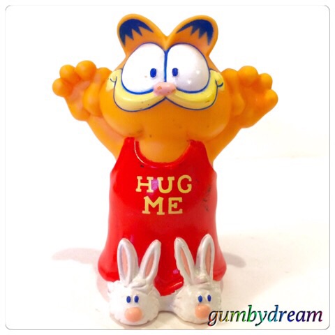2011/09/30 Category : GARFIELD Garfield "HUG ME" 1990s 1990年製のガーフィールドです。Tシャツの"HUG ME"が効いてます。なにげにウサギのスリッパもインパクトありますね。アリゾナのアンティークショップからいらっしゃいました。スコッツデールからセドナにドライブ旅行をした時だったと思います。お腹を押すとピヨピヨて音を出しますので幼児用でしょうか?彼をピヨピヨしてる幼児の絵づらが思い浮かびませんが…Garfield1978-1981 United Feature Syndicate, Inc.1990 Remco Baby Inc. ©2011-2015 GUMBYDREAM Created with flickr badge. http:// PR