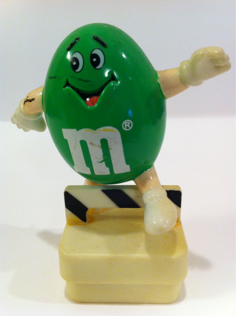2012/08/10 Category : M&M'S M&M's Green jumping over a Hurdle 1990s オッさんのオリンピック無理矢理こじつけアイテムもネタが枯れてきました…。誰かいないかと物色したら、なんとグリーンさんがハードルを飛び越えてるじゃないですか!早速、登場していただきました。1992年製のTUBE TOPPERです。TUBE TOPPERっていうのは、筒状のチョコのフタちゅうことです。躍動感の無いデザインですが、ハードル競技を行うグリーンさんに間違いはありません。シドニー、アテネ、北京と連続出場をしてきた為末選手が引退してしまい、日本のメディアにはなかなか取り上げられなくなってしまったハードル競技ですが、110mハードルはトラック競技の中でも100mに続く花形レースなんですよ。オッさんが高校で陸上をやってた頃は、110mハードルは「トッパー」って呼んでました。まだ、そう言うのかな?トウ(10)パー(ハードル)ちゅう意味です。ちなみに女子の100mハードルは「ヒャクパー」、400mハードルは「ヨンパー」です。なんか業界用語みたいでカッコいいいでしょ?ハードル選手って背が高くて足が長い人が多いから、もう、男子トッパーの決勝戦なんて支部大会クラスでも女子がキャーキャー言っとるわけです。簡単に飛んでる(って言うか跨いでる)ように見えますが、素人さんには普通に飛び越えるのも難しい高さです。。身長がそれほど高くもなく、どちらかといえば短足なオッさんには「ムリ!」ちゅうわけです。そんな花形競技のハードルですが、今回のオリンピックでは日本で全く報じられてません。ですから、金メダリストだけはオッさんが書き留めておいてあげましょう。男子トッパー Merritt Aries (USA)男子ヨンパー Sanchez Felix(DOM)女子ヒャクパー Pearson Sally(AUS)女子ヨンパー Antyukh Natalya(RUS)皆さん、おめでとうございます!!©MARS INC. 1992MADE IN CHIINA ©2011-2015 GUMBYDREAM Created with flickr badge. http:// PR Comment0 Comment Comment Form お名前name タイトルtitle メールアドレスmail address URLurl コメントcomment パスワードpassword