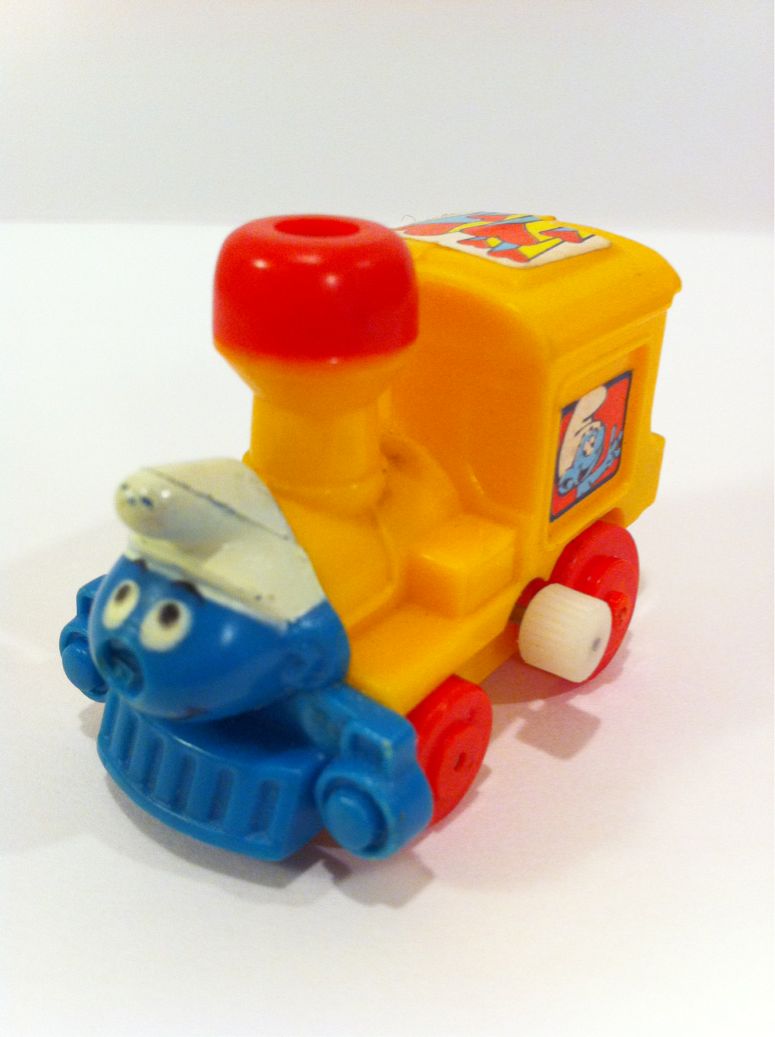 2012/09/03 Category : SMURF Smurf Windup Toy Train 1980s 1982年製のスマーフさんです。機関車トーマスでも意識したんでしょうか?スマーフが機関車になっちゃってます。これもハワイ島のアンティーク・ショップからいらっしゃいました。ゼンマイ仕掛けで走るTOYですが、残念な事が3点あります。まず1つはスマーフの鼻が欠けちゃってる事。2つ目はゼンマイ仕掛けが壊れていること。そして3つ目はセットになっているはずの赤いレールセットが無いこと。まぁ、このコンディションから見てコレクターの方が持ち込んだ物ではなく、どこかのお子さんがしっかり遊んだ後の物ってことですね。いいんじゃないでしょうか。オッさんはデッドストックのようなピカピカな物を見つけた時も嬉しいのですが、本来のアンティーク・トイはある程度使い込まれてるから味が出ると思ってます。まぁ、商品価値としては落ちるんでしょうけど、商売するために集めているわけでもないですから。その分、安く買えますしね。今回もオマケで妻の寝巻き用Tシャツをご紹介しましょう。ABCで買ったHumuhumunukunukuapua'aさんのTシャツです。ハワイ州の州魚で、フムフム ヌクヌク アプアと呼びます。日本名はタスキモンガラと言い、日本近海でも見れるそうです。でもやっぱりHumuhumunukunukuapua'aっていう呼び名の方が合ってますよね。ハワイに行けば、ダイビングなんかをしないでも気軽に見る事ができます。お勧めはワイキキのクィーンズ・ビーチの桟橋周辺。ここは餌付けをする人も多いので魚たちをたくさん見ることができます。そのなかにノンビリ泳ぐHumuhumunukunukuapua'aさんを見つけることができるでしょう。いつか我が家のHumuhumunukunukuapua'aさん特集しなくちゃいけませんね。©Peyo 1982 ©2011-2015 GUMBYDREAM Created with flickr badge. http:// PR Comment0 Comment Comment Form お名前name タイトルtitle メールアドレスmail address URLurl コメントcomment パスワードpassword