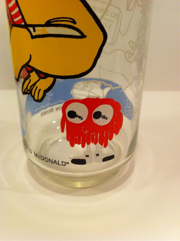 2012/09/19 Category : McDonald's Ronald McDonald Glass 1970s 夜の虫の声が秋な感じとなってきた今日このごろですが、オッさん的にはまだまだ夏。この夏のハワイで仕入れた方々の紹介を続けましょう。1977年製のロナルドのグラスです。オアフのアンティークショップからいらっしゃいました。北米で買う倍の価格だけど日本で買う半分という微妙な価格設定なので買う事にしました。ショップさんも良く研究して値付けしてますねぇ。1977 McDONALDLAND ACTION SERIESと刻印があります。マクドナルドランドというのはロナルドや他のキャラクターたちの故郷の事。シリーズということなので調べてみると、1977年にはこのようなグラスを何種類かリリースしているようです。またまた集めなくてはならないブツが増えてしまいましたねぇ。1970年代物ながら結構な数が市場に出回っているようですから、そんなに高額では無いのがお財布にやさしくていいですね。ロナルドの顔が何やら穏やかというかキュートな感じです。この頃はまだ、ロナルドの顔が固定化されていなかったらしく、同年代のロナルドを見ても怖い感じの物やら可愛い感じの物まで様々です。グラスにはフライ・ガイズもちょこっといらっしゃいます。日本では今でもフライ・ガイと呼ばれる事が多いですが、彼らの名称はコロコロと変わっているんです。初登場は1972年でGobblinsという名前でした。1983年にFry Guysとなり、1987年からはFry Kids。つまり、このグラスに書かれているのは当時の名称で言えばGobblinsということになります。キャラ設定は変わってませんので、当時から他のキャラクターからフレンチ・フライを盗みまくりです。当時のCMでは"Keep Your Eyes on your Fries"と歌ってたらしいですよ。「あんたのポテトから目を離すなよ〜!」って感じですかね。 1977 McDonaldland Action SeriesRonald Mcdonald ©2011-2015 GUMBYDREAM Created with flickr badge. http:// PR Comment0 Comment Comment Form お名前name タイトルtitle メールアドレスmail address URLurl コメントcomment パスワードpassword