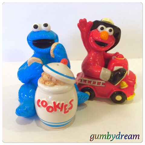 2012/11/05 Category : SESAME STREET Elmo Salt and Pepper Shakers 1990s 昨日はクッキー・モンスターさんに登場いただいたので、今日はエルモさんに登場いただくことにしました。昨日のクッキーさんと同じく1993年製の塩・コショウ入れです。オッさんがLAの従姉妹の結婚式に参列した際、両親と妹と「せっかっくLAに来たんだからNYに寄ってくかぁ〜」という話になって訪れたNYのおもちゃ屋で妻のために買ってきたものです。しかし今から考えると何故、日本からLAに行ったついでにNYに寄るんでしょう?方向ぜんぜん違いますよね。まぁ、難しく考えるのはよしましょう。このエルモさんも小さな穴が空いていて、一応、塩コショウ入れとしての機能はあるようです。クッキーさんと違ってエルモさんは永遠の3歳児なんだそうです。でも実は年を取っていて、地声は野太かったりすると笑うんですけどね。「ボク、エルモ〜」の野太い声バージョンも聞いてみたいもんです。せっかくだからクッキーさんとの2ショットも撮っておきましょう。塩コショウ入れとして日常使いも良いかもしれませんが、陶器製だからいつか割っちゃいますよね。やはりガラスケースの中で安全な暮らしを保証してあげるほうが良いでしょう。オッさんの調査によると、この他にビッグバードのバージョンがあるようです。しかしながら妻はエルモ&クッキーモンスター専門なので、ビッグバードには全く興味を示しません。よって、我が家にビッグバードさんが来て勢ぞろいすることは永遠に無いでしょう…。©DisneyLic.EnescoMade in China ©2011-2015 GUMBYDREAM Created with flickr badge. http:// PR