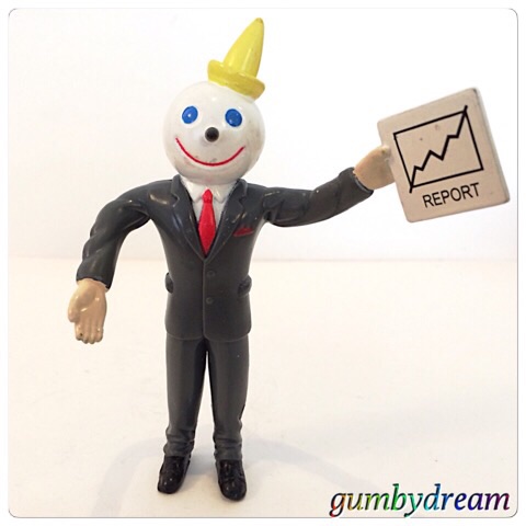 2012/11/14 Category : JACK IN THE BOX CEO JACK 1990s 今日はジャックCEOです。1990年代のMEAL TOYで、オアフのアンティークショップからいらっしゃった。このシリーズは見つけるたびに胸が高鳴りましたねぇ。実はオッさんは11月に入ってから仕事が忙しく、今週も残業続きで帰宅は午前様になってしまいます…。まぁ仕事があるってことは良いことなのですが、若い時と違って深夜までの残業が続くと、身体の節々が痛いし、目はショボショボしてくるし…。PC相手に格闘した後は目もチカチカしちゃうから寝つきも悪いんですよねぇ。昔は11時まで残業してそれから飲みにとか行けたんですが、オッさんとなるとそうもいきません。ってことで、ビジネスモードのジャックさんに登場いただいたわけです。このグラフみたいに仕事も右肩上がりだといいですね。ところで、先日UPしたカウボーイのスポンジ・ボブさんがどこからいらっしゃったかが判明しました。オッさんのブログを見た妻が、ボブさんの実物をチェックしたところ、正札がついていたのを発見したためです。あのボブさんはNYのUpper West Sideにあるおもちゃ屋さんからいらっしゃいました。妻とZABAR'Sという映画"You've Got mail"に出てきた老舗のスーパーマーケットにを訪れた際、付近をウロウロしていて見つけたおもちゃ屋さんです。妻がエルモなどを長々と物色している時に、オッさんがレジまわりでサクっと購入したことを思い出しました。さすが我が妻!やるじゃないですかぁ。その調子で頼みますよ。mfg for JACK IN THE BOX RestaurantsMade in China ©2011-2015 GUMBYDREAM Created with flickr badge. http:// PR