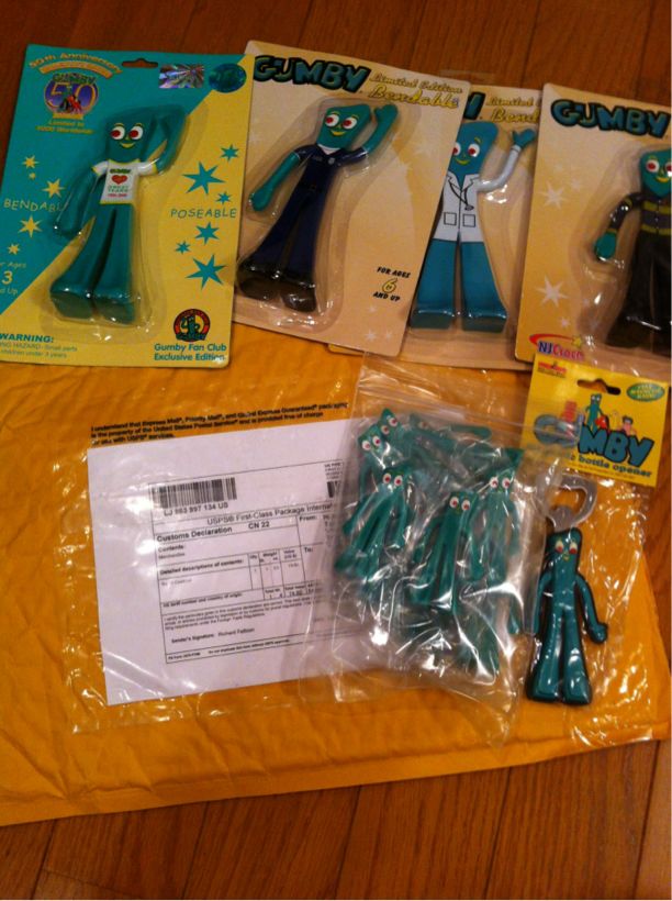 2013/02/03 Category : THE SIMPSONS Quick Meal Toy "Bart Simpson" 1990s 1998年製の欧州Quickのミール・トイのBARTさんです。以前にご紹介したMARGEとのセットものですね。当然、ご家族揃ってカルフォルニア州ポモナからの来日です。BARTさんと言えばThe Simpsonsの中心的キャラクターですが、過去には米国TIME紙の表紙も飾った事がある有名人です。TIMEの表紙と言えば政治、経済、芸術などの著名人がモデルとなる事で知られてますよねぇ。The Simpsonsがポップ・カルチャーとして一世を風靡するした証でしょう。ところで、本日、オッさんが待ちに待っていたブツが遠路はるばる米国から届きました。と言っても米国の方が届けてくれたわけではなく、近くの郵便局の配達の方が届けてくれたんですけどね。ニュージャージー州のコレクタブル・ショップからネットでGUMBYグッズを数点購入したのです。ウヒヒ!米国からネットで買い物をするのは、そう難しくは無いのですが、ネックは送料です。普通は20ドル以上を取られてしまうこともあり、なんだかもったいないし、そんなに送料を取られるのであれば米国に遊びに行った時に買えばイイと思っちゃいますよね。ところが、今回はこれだけ買って送料が9ドル。これなら納得です。それにGUMBYだけは米国に行ってもなかなか店頭で見つけることができないんです。新作が出ていると知っていても、トイザらスやWALMARTに置いてあるわけでもなく、モールのTOY SHOPでも見たことはありません。見つける前に廃盤なんて事もありますから、GUMBYコレクターのオッさんとしては勝負に出ちゃうというわけです。また、今回は特集な事情がありました。オッさんは毎回、このブログに載せている方々を3インチのGUMBYさんと絡ませてInstagramにアップしていますが、いつも登場していただいているGUMBYさんが満身創痍。オッさんがGUMBYさんに様々なポーズを要求するので、数ヶ月前から腕の中の針金が折れてしまっていたのです。まあ、脱臼とか骨折とかいう感じですね。針金を買って来て挿入するなど、できる限りの事で対応してきたのですが、これ以上、酷使すると腕が取れてしまう可能性が出てきました。正月の米国旅行で、交代要員となるGUMBYを探したのですが、探してあるという代物でもありません。現役GUMBYさんの症状は悪くなる一方で時間はありませんし、将来の事も考えて複数の交代要員の確保も必要です。ネットで探しまくる事にしたのですが、オッさんの条件は厳しく、これという業者に行き当たりませんでした。オッさんの条件は、1 安価であること2 ポーキーさんは元気なのでGUMBYだけで売っていること3 送料が安いこと4 同梱で他のGUMBYグッズが買えること5 米国外への配達をしているところで、ニュージャージー州のコレクタブル・ショップに出会ったというわけです。この店はトレーディング・カードの専門店なのですが、なぜだかGUMBYグッズを置いてあったんですねぇ。しかも3インチのGUMBYが10個で24ドル。1個2ドル40セントとは格安です。で、来ました!後継者達が!GUMBYさんの選手寿命が1年としても、これで10年は安心です!はぁ…将来の備えができて安心しました!他のGUMBYグッズたちはオイオイご紹介していくことといたしましょう。QuickThe Simpsons ©1998 FOXChinaMATT GROENIN ©2011-2015 GUMBYDREAM Created with flickr badge. http:// PR Comment0 Comment Comment Form お名前name タイトルtitle メールアドレスmail address URLurl コメントcomment パスワードpassword