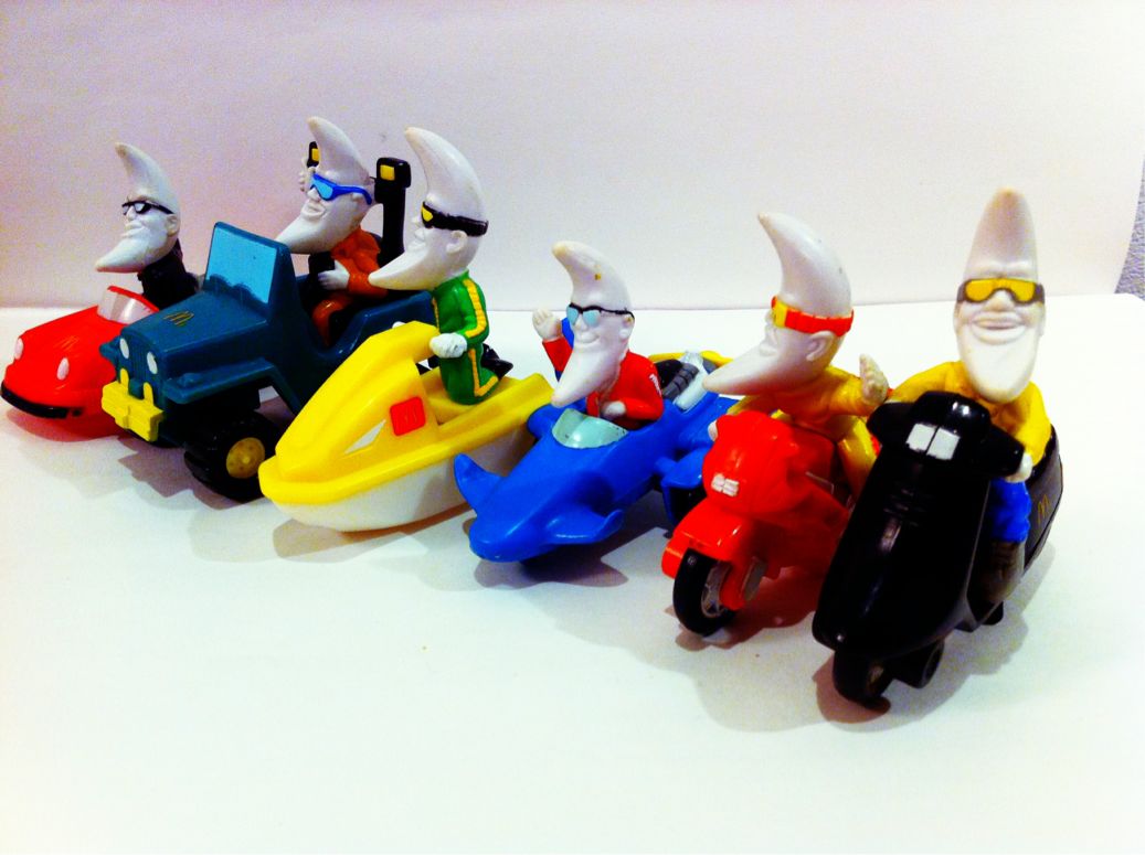 2013/07/01 Category : McDonald's MAC TONIGHT MOTOR SCOOTER 1988 アリゾナ州フェニックスから、待ち望んでいた方が来日いたしました! 1988年のMcdonalds Happy Mealより、Mac Tonght開始時にリリースされた井上君全6種類の最後のお一人、「スクーターに乗る井上君」です。アンティークショップで出会った時は、思わず声を上げちゃいましたよ。あ、井上君の事が知りたい方は、申し訳ございませんが過去の記事をご覧ください。もう説明するのが面倒くさくなりました。全6種類が揃うと圧巻ですね。復習しますと左からポルシェらしきオープンカーに乗ったタキシード姿の井上君、ジープに乗ってワイルドな井上君、マリンジェットに乗る海の男の井上君、飛行機乗りな井上君、ライダースーツに身を固めてレーシングマシンに乗る井上君、そしてちょっと不良な高校生みたいにスクーターを乗り回す井上君です。ついに出会うべくして出会いましたね。このシリーズが全て揃うのはもっと先の事かなぁと思っていましたが、意外に早くてびっくりですね。まぁ、こればっかりはご縁が無ければなんともなりません。フェニックスから連れて帰って来た方々のご紹介が全て済んだわけではありませんが、この井上君でひと段落ちゅうことで、集合写真を撮ってみました。早いところ解散して収納しないとホコリだらけになっちゃいますからね。これからは別々の収納場所で新たな仲間と楽しくやってもらうこととしましょう。あ、集合写真に欠席?いやいや、オッさんが集合させるのを忘れていた方がおりました。申し訳ございません。これで全てになるはずです。さて、今日、オッさんと妻は「空飛ぶペンギン」を鑑賞しました。原題は"Mr.Popper's Penguins"で「ポッパーさんのペンギン達」ということになりますが、何故だか邦題は「空飛ぶ~」となってしまった作品です。2011年に米国で公開されたジム・キャリー主演の映画ですが、なんと日本では未公開。WOWOWさんのお計らいで鑑賞することができました。何で未公開なんでしょう?そこそこ面白いのに。我が家でペンギンさんを探したのですが、ピングーさんとかは集めていないので不在。台所に謎のペンギンさんの塩入れがありましたので、ペンギン関係者ということで出演しておいていただきましょう。 ©2011-2015 GUMBYDREAM Created with flickr badge. http:// PR Comment0 Comment Comment Form お名前name タイトルtitle メールアドレスmail address URLurl コメントcomment パスワードpassword