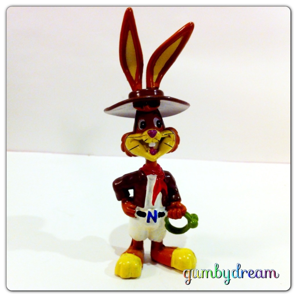 2013/07/27 Category : Advertising Character COWBOY NESQUIK BUNNY #1 今日のご紹介はNestleのNesquikのキャラクターであるNesquik Bunnyさんです。 カウボーイ・ハットから耳が出ているところがキュートだと思います。 Nesquikとはネスレ社の製品でミルクに溶かすチョコレート風味の粉末です。まぁ、甘ったるいミロみたいなもんですね。 1948年に米国ネスレ社が「粉末チョコレート・フレーバー・ミックス」を開発。ネスレ社は1950年代から"Quik"としてバナナ味やストロベリー味、バニラ味なども開発して続々と世に出してきました。1980年代以降もチェリー味やらマンゴ味、トリプルチョコレート味や蜂蜜味、クリームソーダ味などを商品化しています。1997年に欧州での製品名でもあった"Nesquik"に名称を統一して現在に至ります。 Bunnyがキャラクターとして登場するのは1960年にQuikのストロベリー味が発売された時で、当時の缶パッケージに頭にイチゴを乗せたピンクのBunnyが刷り込まれていました。襟に赤い「Q」の文字が入ったネックレスみたいのを付けていたのがトレードマークです。このピンクのBunnyを「初代」ということにしましょう。 二代目の登場は1973年。チョコレート味がリニューアルされ"New Chocolate Quik"が発売された時に、テレビCM用として茶色のBunnyがデビューします。まぁ、一般的に”Quik Bunny"と呼ばれるのはこの二代目さんですね。 2001年に商品名がQuikからNesquikに変更された際に、Quik Bunnyもリニューアル。名前を"Nesquik Bunny"とします。それまでトレードマークであった「Q」の文字も「N」に変更。 今日ご紹介したBunnyさんのベルトの文字は「N」ですから2001年以降のNesquik Bunnyさんということが、これでわかりましたね。 どこの街で買ったかは忘れましたが、アンティークショップではなく、雑貨やで新品を買ったと記憶しています。 我が家にはもう1体のNesquik Bunnyさんがいらっしゃいますので、次回にでもご紹介することといたしましょう。 さて、今日、この方に出ていただいた理由は「出っ歯」だからです。 今日、妻と録画しておいた"THE BEAVER"という映画を観たので、ビーバーさんはいないかと家中を捜索したのですが発見できず、やむなく「出っ歯つながり」ということでNesquik Bunnyさんに白羽の矢をたてたのです。 "THE BEAVER"は2011年公開の米国映画で、なんとジョディ・フォスターが監督を務めています。主演はメル・ギブソンで、奥さん役がジョディ・フォスター。2012年のアカデミー主演女優賞を受賞したジェニファー・ローレンスさんも出演されてます。邦題はなぜだか「それでも愛してる」。まぁ内容的に合ってるんですが、相変わらずセンスないですねぇ。 ビーバーのマペットが登場する映画という事でTedみたいな映画かなぁと思っていたのですが大間違い。けっこう、シビアなストーリーだったりします。 妻もある意味で酷評。映画の中身が云々という事ではなく、メル・ギブソンとビーバーのマペットとの関係性に共感できないということらしいです。Tedは主人公の親友、これはすごく共感できるんだそうです。でもビーバーさんとメル・ギブソンの関係は・・・・ネタバレになるので書けませんが、妻いわく「腑に落ちない!ビーバー君に対して失礼だろう!そもそもビーバー君との付き合い方が間違ってる!」ってことなんだそうです。 さて、Cowboy姿のBunnyさんを見ていたら、久しぶりに西部劇を観たくなりました。明日は妻が起きる前に久しぶりに西部劇の一本でも観ましょうかね。 ©2011-2015 GUMBYDREAM Created with flickr badge. http:// PR Comment0 Comment Comment Form お名前name タイトルtitle メールアドレスmail address URLurl コメントcomment パスワードpassword