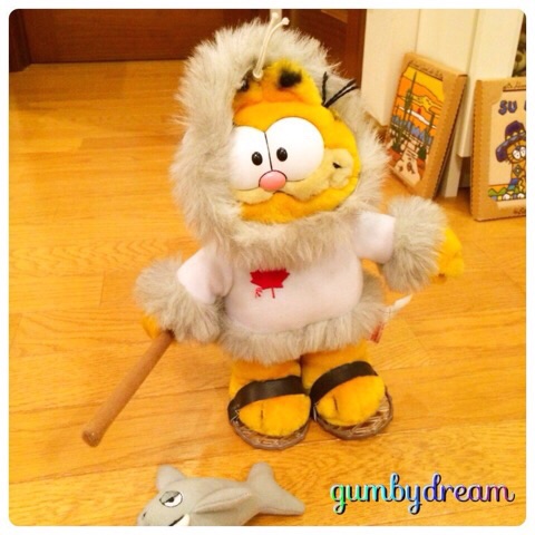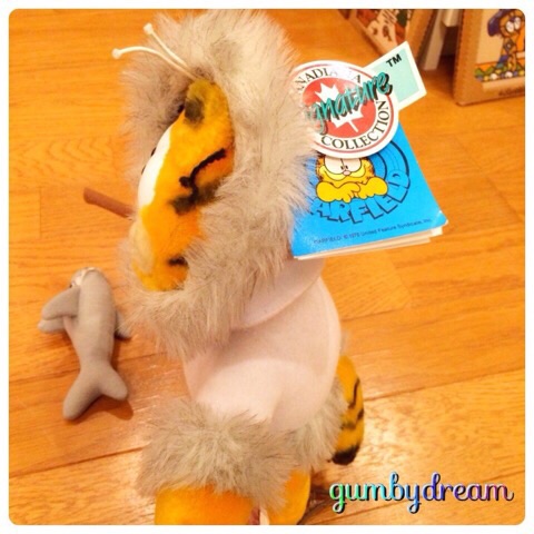2014/01/20 Category : GARFIELD Dakin,Inc Canadiana Signature Collection Garfield (1980s-1990s) 今日からウエスト・ラスベガスのCharleston Antique Mallからいらっしゃった方々をご紹介していきましょう。カナダの北極圏仕様のガーフィールドさんです。どうです?この存在感。妻が発掘し、即、連れてかえる事を決断した逸品です。カナダの北極圏のイヌイットの方々のコスプレですね。少し詳しく観察してみましょう。まず服装ですが、イヌイットのアノラックでしょうか?アザラシやホッキョクキツネ、カリブーなどの毛皮を使うんだそうです。足に履いているのはスノーシュー。日本で言えば「かんじき」ですが、楕円形の形で踵が固定されていないので、用途は同じながら厳密に言えば「かんじき」とは違うんだそうです。そして釣竿を持っていて何やら魚が釣れています。カナダだけにサーモンか?と思いましたが、背ビレはあるし歯がギザギザだし、これってサメじゃないですか?イヌイットの方々の伝統的な狩猟って、アザラシとか鯨とかというイメージがあって、北極圏でサメって思いも付かなかったので調べてみたところ、イヌイットの方々は伝統的に北極圏に生息するGreenland Shark、日本名でニシオンデンザメという奴を捕食していたんだそうです。釣り方は大胆。北極圏の海氷に穴を開け、そこに肉の塊をつけた釣り糸を200Mほど垂らし、2日間くらい放置して釣り上げるとサメ君がひっかかっているとのこと。巨大ワカサギ釣りみたいなもんですね。このガーフィールドさん、イヌイットの伝統的狩猟を忠実に再現してるってことです。食した方のブログを読みましたが、このサメの肉は強烈なアンモニア臭がするらしく、干し肉として食すらしいのですが、クサヤどころではないとのこと。でも北極圏で生きていくって、そうゆうことなんですよね。このガーフィールドさんがレアなのはその容姿だけではなく、タグがちゃんと付いたままになっているということです。もちろん、USEDだとは思いますが、DEAD STOCKと言っても過言じゃないコンディションですよ。タグからDAIKIN社製ということがわかります。ガーフィールドのPlash Toyはパテント取得年の1978年の表示があるだけで、製造年がなかな判明しないのが常ですが、このタグがあってもはっきりしないですね。DAKIN社のロゴもキュートです。どうやらこのガーフィールドさんはCANADA SIGNATURE COLLECTIONというシリーズらしいです。タグの中身も英語とフランス語の表示があります。このアンティーク・モールではガーフィールドさんと大量に出会いましたので、今後数日間は「ガーフィールド祭り」となります。ご期待ください。CANADA SIGNATURE COLLECTIONGARFIELD 1978 United feature Syndicate, Inc86-1990 GAFIELD NORTH COUNTRYDAIKIN, INC.SAN FRANCISCO, CAPRODUCT OF KOREA ©2011-2015 GUMBYDREAM Created with flickr badge. http:// PR