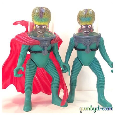 2011/11/20 Category : Movie Character MARS ATTACKS! "MARTIAN TROOPER" 1990s 昨日に引き続きMARS ATTACKS!に出演されたMARTIAN TROOPERさんです。昨日は大使さんでしたが、本日は一般の兵士さんとなります。兵士さんも大使さんと一緒にオアフからかLAからか…その辺りからいらっしゃいました。大使さんと兵士さんは顔で見分けることができないので、服装で見分けるしかありません。赤いマントが大使さんで、マントをしてないのが兵士さんです。ご自分たちでは顔で見分けがつくのでしょうか?MARS ATTACK!はB級とかC級とか酷評されることもありますが、監督はBATMAN,EDWARD SCISSORHANDS,Charile and the Chocolate Factory,Alice in Wonderlandなどで有名なTim Burtonさんなんです。俳優陣もJack Nicholsonをはじめ豪華な顔ぶれです。話が安っぽくてハチャメチャですがオッさんは大好きな映画です。記念に大使さんと兵士さんのツーショットも撮っておきました。1996TRENDMASTERS,INC.ST.LOUIS,MO 63101 U.S.AMADE IN CHINA©1996 Warner Bros.Based on MARS ATTACKS!®The copylighted property of the Topps Company,Inc. ©2011-2015 GUMBYDREAM Created with flickr badge. http:// PR