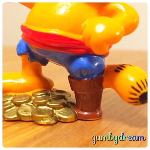 2014/05/26 Category : GARFIELD Garfield the Pirate 1980s 今日のご紹介は海賊姿のガーフィールドさんにしました。 ガーフィールドのPVCと言えば、何回もご紹介している通り、1980年代の西ドイツBully社製です。 このコスチュームは1985年に米国CBS系列でハロウィーンの特番として放映された"Garfield's Halloween Adventure"という番組でのガーフィールドさんを再現したもの。つまり、1985年以降のプロダクトということになりますね。 なかなか面白いディテールなので細かくご紹介しましょう。まずは紫の海賊帽。海賊と言えばこの帽子ですが、Tricorneという種類の帽子なんだそうです。元々はツバの大きな帽子で、それを前後で折るとこのような形になるわけで、左右に折ればカウボーイハットとなるということですね。雨の日や海上で水をかぶっても水が左右に落ちるので顔に落ちないとか。 ちなみにドクロの海賊マークのことはJolly Rogerと呼ばれています。海賊船が攻撃の前に掲げ降伏を促すために使われたとか。ビビッて抵抗しないという場合は白旗を揚げて降参、降参したときは船や乗組員に危害を加えず盗るものだけ盗ってさっていくんだそうです。降伏しない場合は・・・・じゃんじゃん攻めちゃうんです。 ガーフィールドさんの前歯は金歯。オッさんも見えにくいところに金歯をいれてますが、ここまで成金チックではありません。 片足は木製の義足です。海賊と言えば義手や義足のイメージがありますが、実在の有名な海賊さんたちにそのような例はなく、義手はフック船長、義足は「宝島」のジョン・シルバーによって広く海賊のイメージとして定着したようです。 今日、この海賊姿のガーフィールドさんに登場したいただいた理由は・・・・・、オッさんが百田尚樹さんの「海賊と呼ばれた男」を読了したからです。流行った時に入手したけど、なかなか読む時間がなく放置されていました。ここ最近、東北中を新幹線で移動していましたので、車中で暇つぶしに読んでいたんです。 出光興産創業者の出光佐三をモデルとした小説。名称を多少変えていますが、内容としてはノンフィクションですね。なかなか迫力あって面白い本でした。 今日は仙台で仕事でしたので、先週の秋田出張ネタでもご披露しましょう。まずは最近お世話になっている秋田新幹線こまち号。この2ヶ月で何度乗ったか・・・・。オッさんとしてはこのウルトラマンみたいなカラーが気に入っております。 東京と盛岡間は320Km/hというすごいスピードですが、盛岡と秋田の間は最高速度130Km/hのノロノロ運転。しかも大曲駅でスイッチバックはあるわ、単線だから山の中ですれ違い待ちで止まることはあるわ・・・。なんとも不思議な新幹線です。車両には詳しくありませんがE6系というらしいです。 先週の妻へのお土産は「なまはげサブレ」。特に秋田銘菓というわけでは無いのですが、安いし面白いので買ってみました。お味はそれなりに美味しいですよ。 今日の仙台市は最高気温19℃と寒く、現在は14℃。妻は「いったいいつまで寒いのよ~」とキレ気味ですが、お天気に文句言ってもねぇ。明日からは最高気温が20度以上になるようですが、東京に比べれば寒い毎日です。風邪、ひかないようにがんばることとします。 ©1978, 1981United Feature Syndicate, Inc. BULLYWEST GERMANY ©2011-2015 GUMBYDREAM Created with flickr badge. http:// PR Comment0 Comment Comment Form お名前name タイトルtitle メールアドレスmail address URLurl コメントcomment パスワードpassword