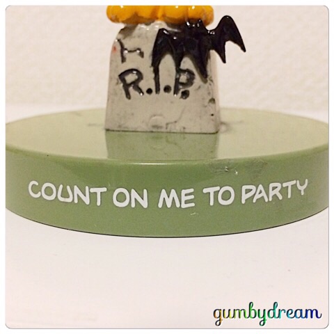 2014/10/26 Category : GARFIELD Ceramic Vampire Dracula Garfield 1980s そろそろハロウィンですので関係者の方々の紹介をいたしましょう。今年のトップ・バッターはドラキュラ伯爵のコスプレをしたガーフィールドさんです。今年の新年旅行で訪れたLas VegasのCharleston Antique Mallからいらっしゃいました。詳しく観察してみましょう。まずはお顔周辺。ドラキュラ伯爵なのでキバがちゃんと付いてます。しかし伯爵風のズラはいかがなものでしょうかね。塗装の荒さも残念ポイントです。ガーフィールドさんが立っているのはR.I.Pと書いてあるので墓石でしょう。R.I.Pとは”Rest In Peace”の意味。”Mr.○○ R.I.P"というふうに墓石に刻まれる事が多く、「○○さん、安らかにお眠りください」的なものです。台座には”COUNT ON ME TO PARTY”、「パーティーに連れていって」と書かれています。恐らく1980年代のプロダクトで製造はEnesco Imports社。この会社は1958年にN. Shure Companyの輸入部門が独立してできた会社。N. ShureのNとSを取ってN.S Corporation=NSCOとするところをEを混ぜてeNeSCOとしたそうです。現在もギフトウェア製造会社、Enesco, LLCとして存続しています。さて、今日はゆっくり起きて塩釜方面へドライブ。訪れたのは塩釜神社。200段ちょっとの石段も山寺に比べたらかわいいもんです。北上して松島へ。観光地ですので人がたくさんの松島ですが、少し離れれば静かなところもあるんですよ。仙台方面に戻って七ケ浜も。今日は海沿いウロウロコースです。夕食は自宅で頂き物大会。まずは山形「つや姫」の新米を酒田の塩鮭と米沢牛のしぐれ煮で。いやぁまずいです。ご飯食べすぎちゃいます。食後は秋田の方にいただいた幻の梨「かおり梨」。これ、妻の顔くらいある巨大梨なんです。しかし大味ということではなく、すごくみずみずしくて美味しいんですよ。栽培が難しく栽培量が少ないので「幻」と呼ばれているそうです。いやぁ東北の美味しい物を頂けて、なんて贅沢なんでしょうね。東京にいたらこうゆうわけには行きません・・・・。まだまだ季節の美味しい物を探していこうと思います。GARFIELD 1978,1981UNITED FETURE SYNDICATE, INC.LICENSEE ENESCO IMPORTS CORPMADE IN CHINA ©2011-2015 GUMBYDREAM Created with flickr badge. http:// PR Comment0 Comment Comment Form お名前name タイトルtitle メールアドレスmail address URLurl コメントcomment パスワードpassword