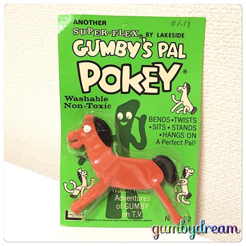 2014/12/31 Category : GUMBY Super-Flex Pokey by Lakeside toys 1965 NIP さて、本年のオオトリは1965年のLAKESIDE TOYS SUPER-FLEXのNIP(New In Packge) POKEYさんです。 昨日のGUMBYさんと一緒にe-bayで購入しました。セットで出品されていたので送料も二つで$16.75とお安く仕上がり、オッさん的には良い買い物したとご満悦です。 LAKESIDE TOYSのPOKEYさんもオアフ島のBailey'sでGUMBYさんと一緒に入手。その時の記事はこちらをご参照ください。 Lakeside Toys Super-Flex Pokey 1965 今日もこのPOKEYさんをじっくり見ていきましょう。やはりGUMBYさん同様、新品でも塗装は粗いんですね。USEと比較するとNIPの美しさが映えます。 タイトルは”GUMBY'S PAL POKEY"。これも陳列用のフック穴が開いていないデッドストック。右上に$1.19と手書きでありますが、これは当時の販売価格なんでしょうかね。当時を思わせる書き込みなんで、これも価値ありって感じです。 右下のナンバーはNo.8102。GUMBYさんがNo.8101でしたので続き物という事なんでしょう。このナンバリングが気になるのでネットで色々と調べて見ました。LAKESIDE TOYSのGUMBYさん関連グッズのナンバリングは以下の通りです。どうやらナンバリングと発売年はリンクしていないみたいですねぇ。 No.80111966年 POKEY JACK IN THE BOXNo.80171967年 GUMBY LOLLYPOP-UPNo.80181967年 POKEY LOLLYPOP-UPNo.80241966年 GUMBY JACK IN THE BOXNo.80931966年 POKEY STICK HORSENo.81011965年 SUPER-FLEX GUMBYNo.81021966年 SUPER-FLEX POKEYNo.81211965年 GUMBY COWBOY ADVENTURE COSTUMENo.81221965年 GUMBY FIREMAN ADVENTURE COSTUMENo.81231965年 GUMBY ASTRONAUT ADVENTURE COSTUMENo.81641968年 GUMBY SUPER MINIFLEXNo.81651968年 POKEY SUPER MINIFLEXNo.82121966年 GUMBY EKECTRIC DRAWING SET この他1965年のGUMBY & POKEY HAND PUPPETや1966年のGUMBY & POKEY WIND-UP TOY、1965年のGUMBY'S JEEPなどがありますが、パッケージが確認できないのでナンバリングは不明です。 このままLAKESIDEのGUMBYさんについて語っていたら年が明けてしまいますからこのくらいにしておきましょう。これらの中で数点はUSEDで持ってますが、いつかは全部New in Package、New in Boxで集めたいですねぇ。虎視眈々とチャンスを待つことにしましょう。 今日のオッさん、一昨日の「米沢牛スキヤキ」、昨日の「米沢牛シャブシャブ」ときたので、朝、一人で7kmほど歩いて少しでもカロリーを消費しようと努力。しかしながら昼食は「米沢牛の牛丼」。 イカンイカンということで、食後の運動はこれ。ブックオフで安く購入したTRFのEZ DO DANCEエクセサイズで踊りまくり。これ、初めてやりましたけど効きますね。50分のDVDでオッさんは上半身裸になって汗ダクダクでした。続ければダイエットできること間違いないでしょう。続ければですけど。 今日の夜は頂き物のシャンパンを妻と。紅白見ながらブログ書いて、紅白終わったら年越し蕎麦を茹でて食べようと思ってます。 2014年は年末年始のNEVADA旅行に始まり、4月に仙台へ転勤し妻と移住、仕事で東北中を走り、夏休みはUTAH旅行、妻はおまけにHAWAII旅行という1年。多少の体調不良はありましたが、夫婦二人が健康だったのが何より。来年も初詣で健康祈願しようと思います。 それでは、良いお年を!Wishing you a Happy New Year! 1965 LAKESIDE TOYS, DIVISION OF LAKESIDE INDUSTRIES, INC.,MINNEAPOLIS, MINNESOTA ©2011-2015 GUMBYDREAM Created with flickr badge. http:// PR Comment0 Comment Comment Form お名前name タイトルtitle メールアドレスmail address URLurl コメントcomment パスワードpassword