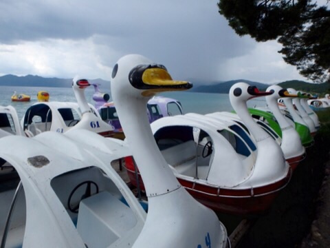 せっかくここまで来たので田沢湖を訪問。ちょっと雲行きが怪しくなってきました。湖の向こうからスコールが来るのが分かります。